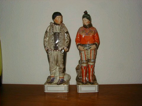 To Store Kongelige Figurer i Overglasur af Grønlæn