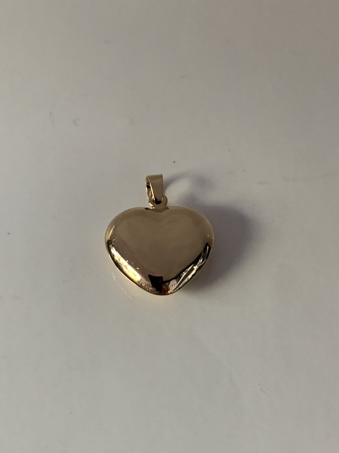 Nice and discreet pendant, shaped like a heart in 14 carat gold. Suitable for necklace. Beautiful minimalistic and classic jewelry.