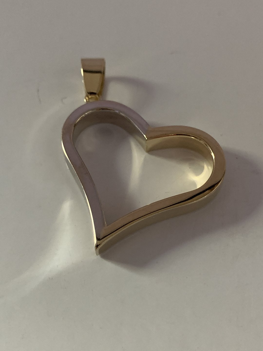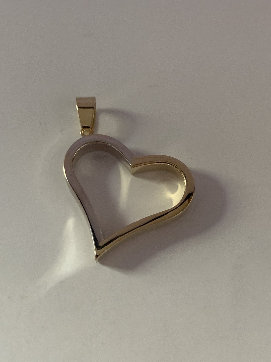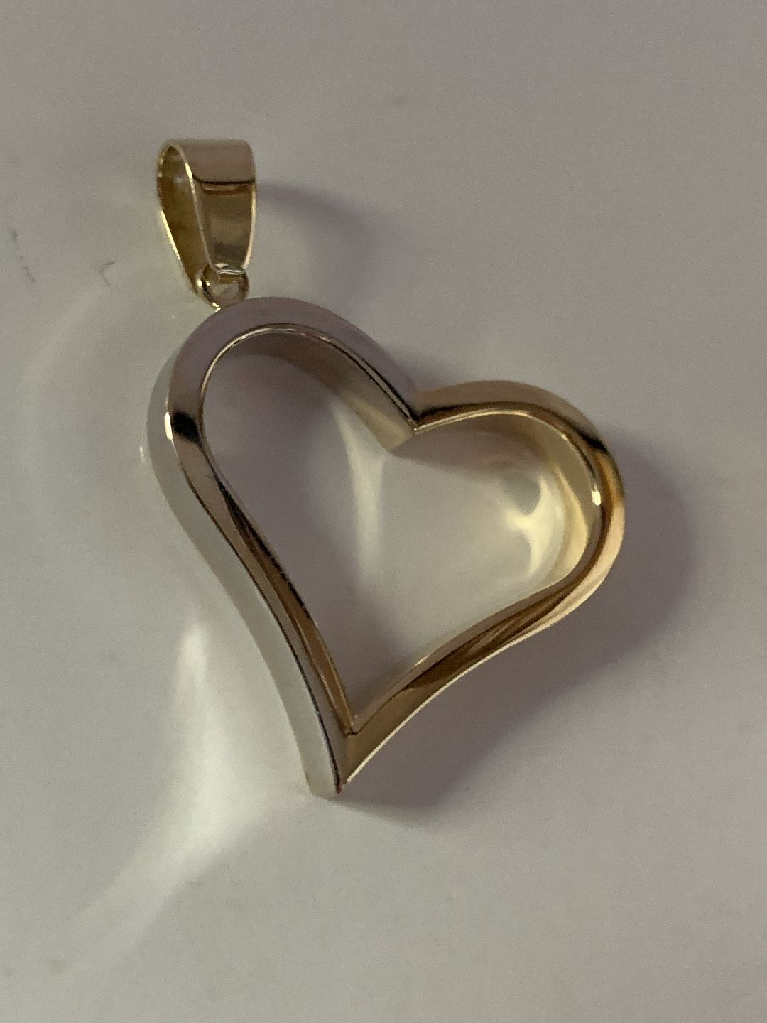Beautiful and elegant pendant for necklace, made in 14 carat red and white gold. The stylish, simple shape gives the pendant a strong but discreet expression. The smooth transition between the red and white gold gives the pendant a beautiful, lively expression. The pendant is ideal for a slightly larger gold chain.