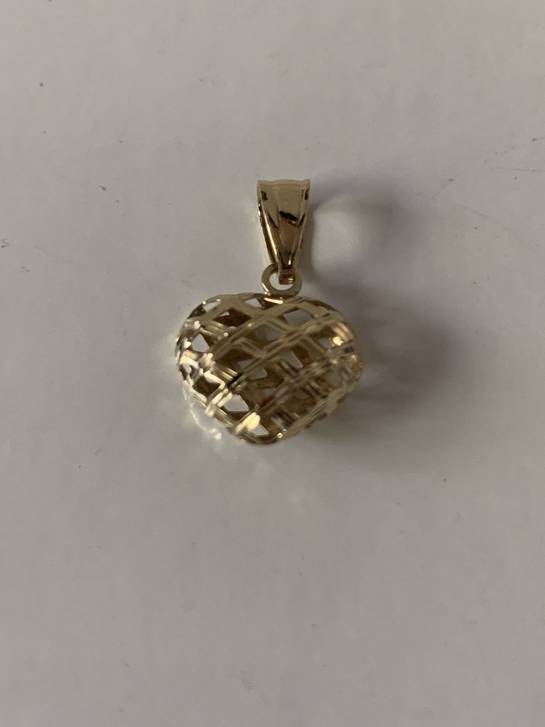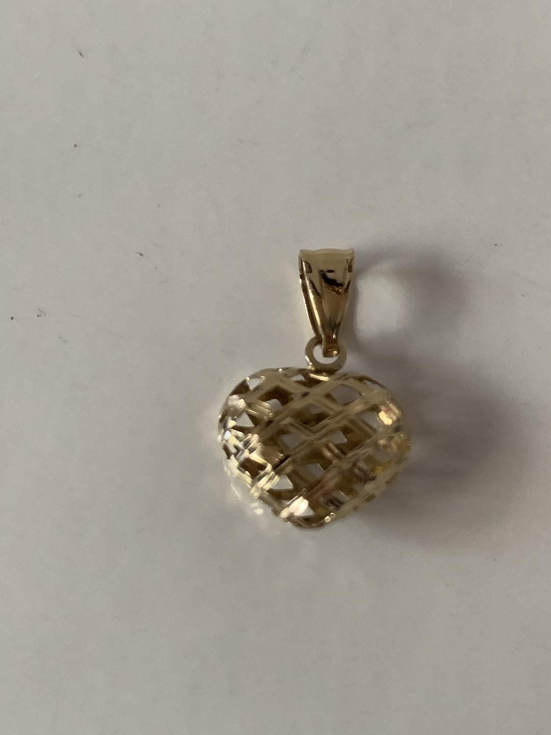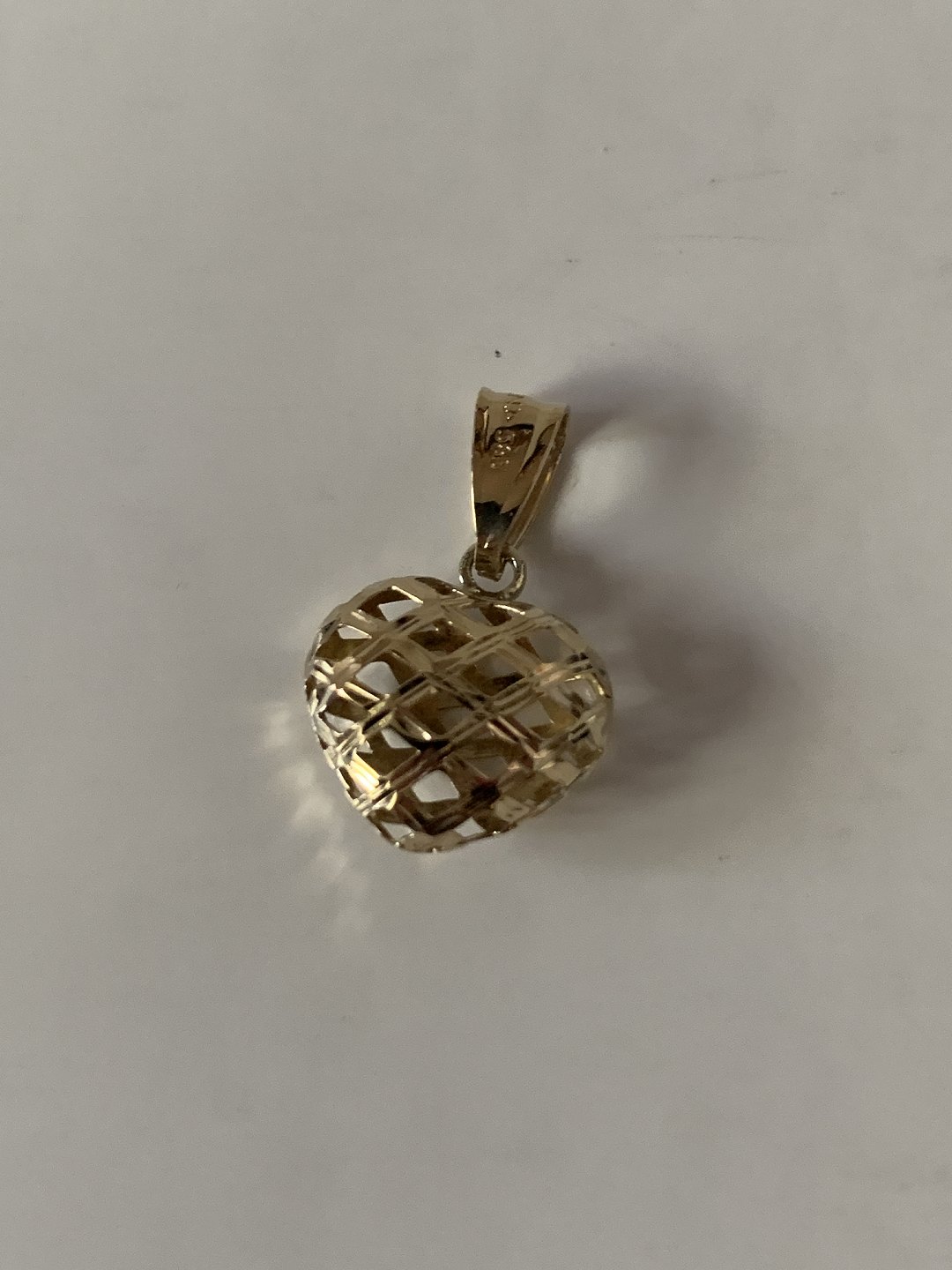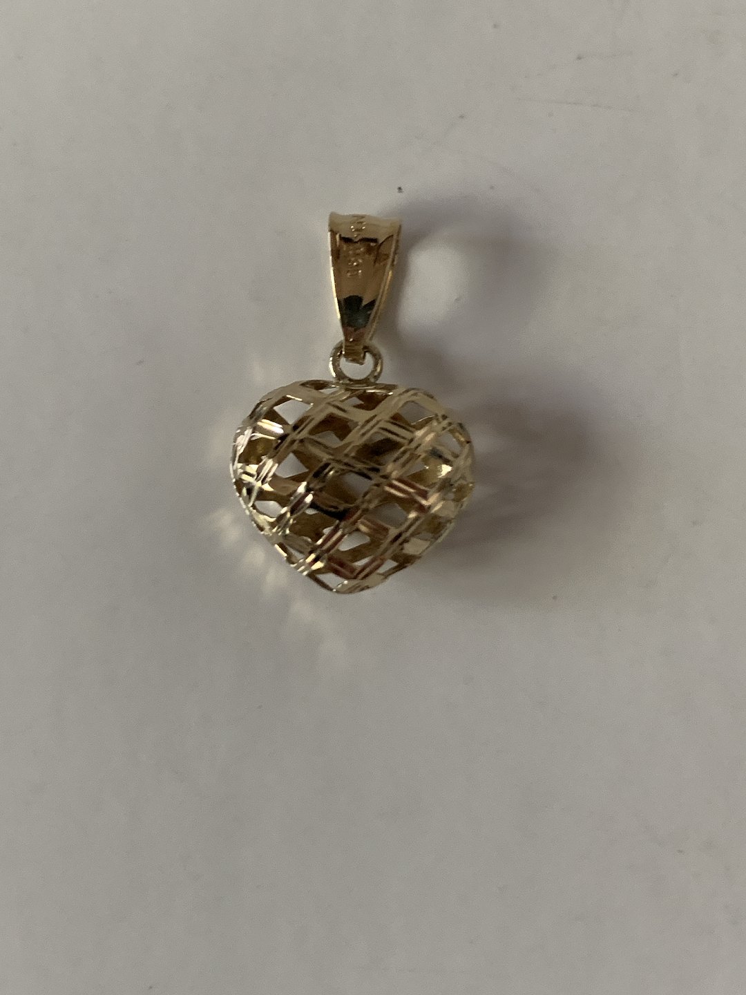 Dette hjerteformede vedhæng er lavet i anderledes stil, som om det er vævet af guldtråde. Det giver vedhænget et luftigt og levende udseende, der vil være et perfekt match med en tynd guldkæde. Designet af vedhænget, får det til at ligne et svulmende hjerte. Et flot vedhæng især til den unge pige.