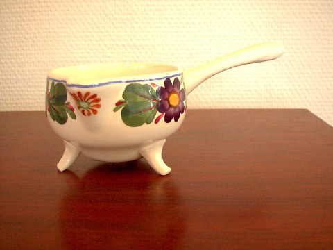 Fantastic creamer produced by Aluminia (Royal Copenhagen). It has decoration number 732/181, length 16.5 cm. Perfect condition.