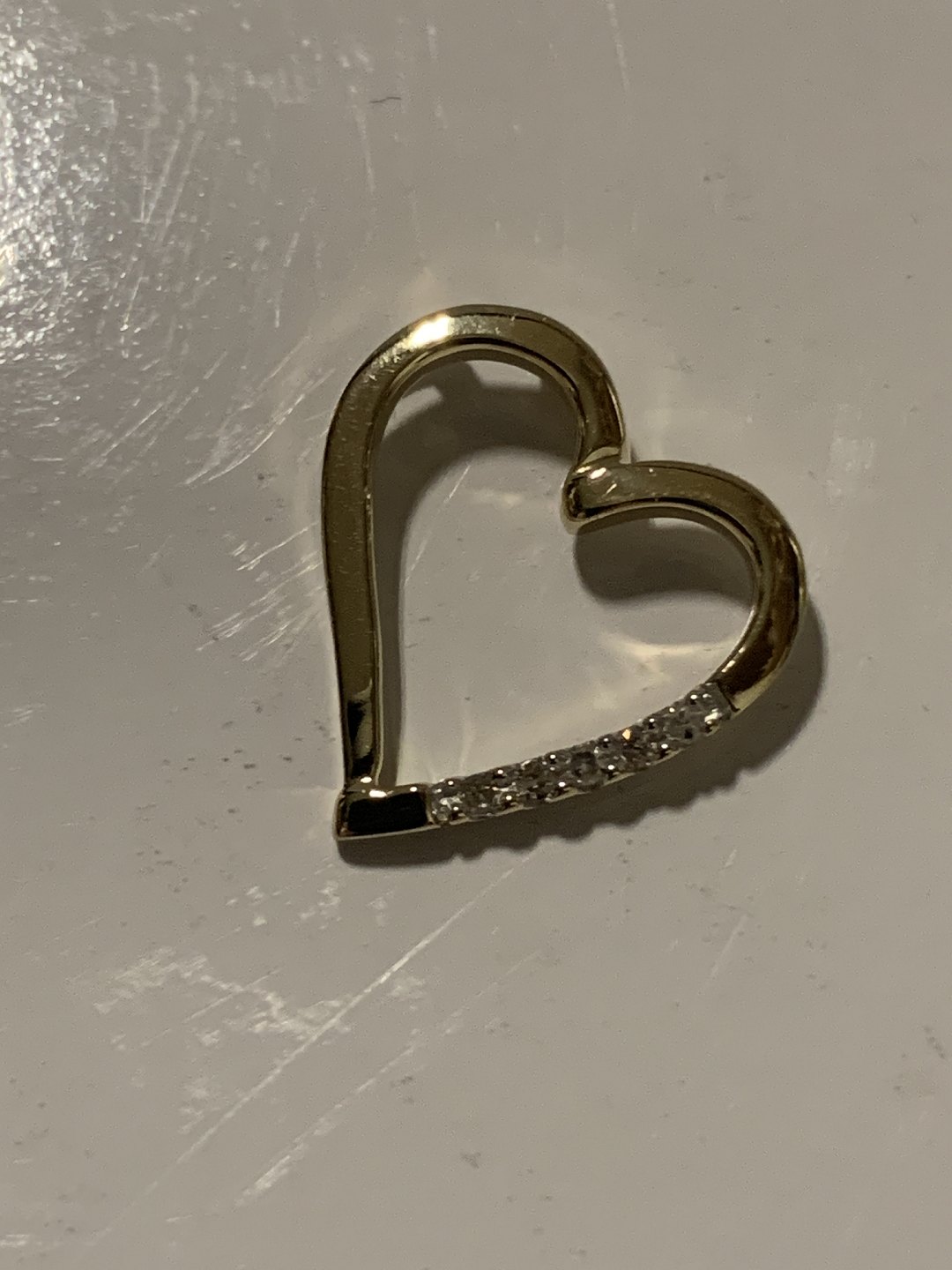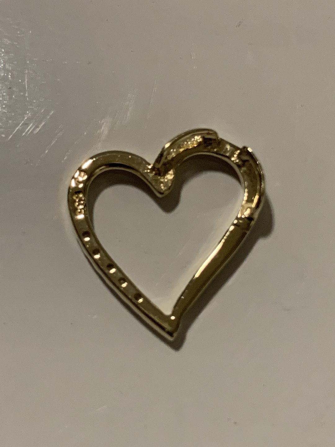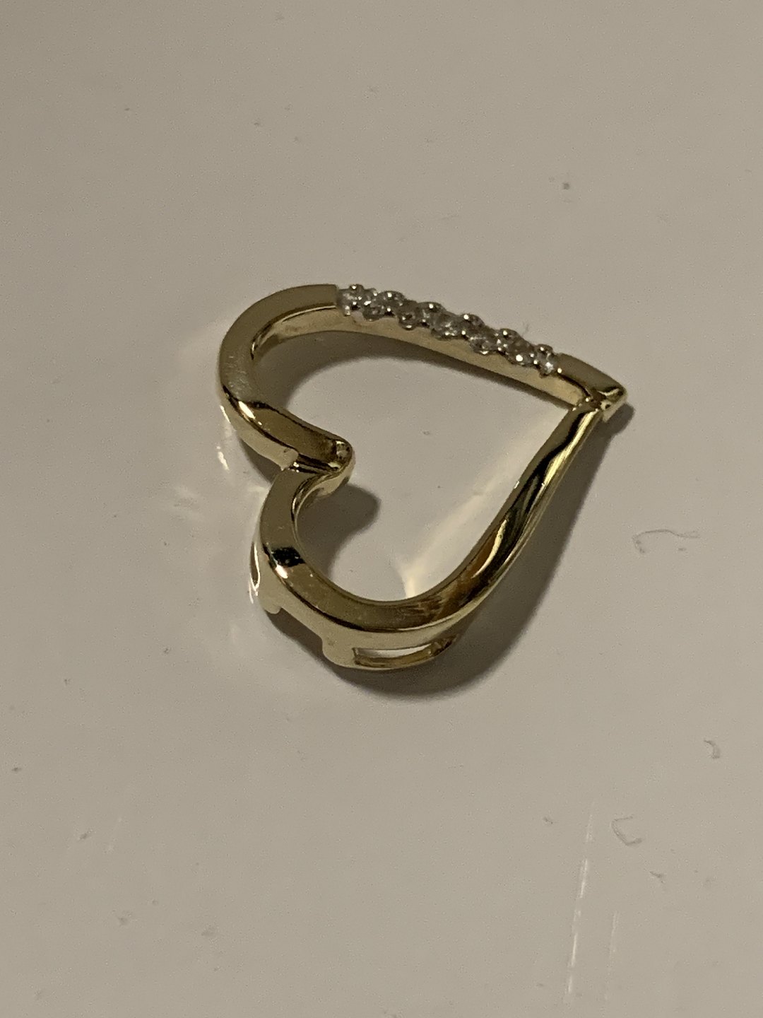 Beautiful pendant, shaped like a heart with embedded diamonds, in 14 carat gold. Suitable for a necklace or as a pendant in a bracelet.