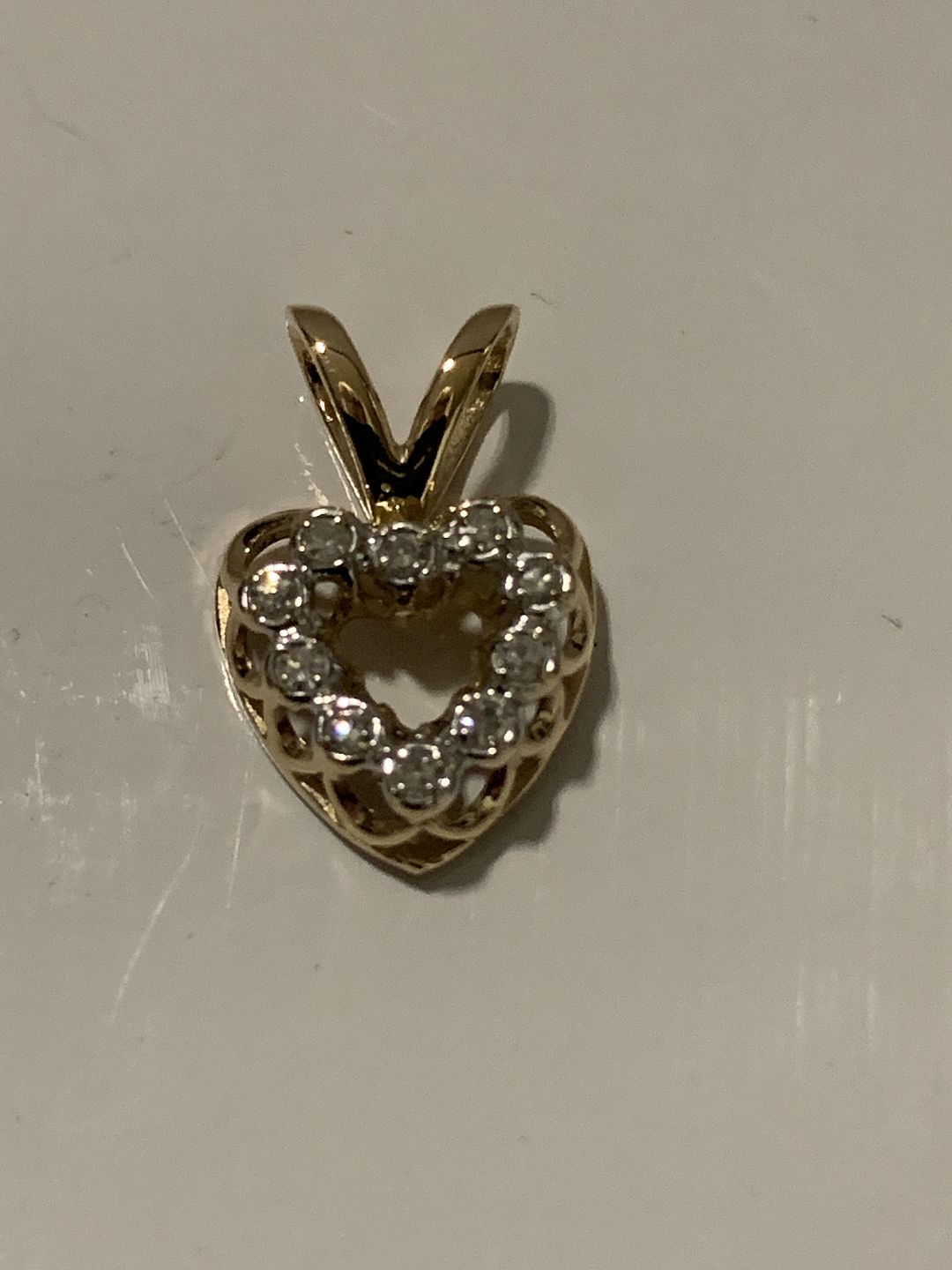 Flot vedhæng, udformet som Hjerte med indlagt Diamanter, i 14 karat guld. Velegnet til halskæde, eller som vedhæng i armbånd.