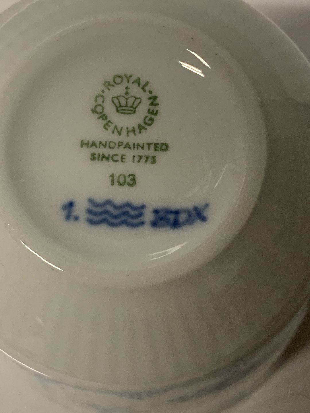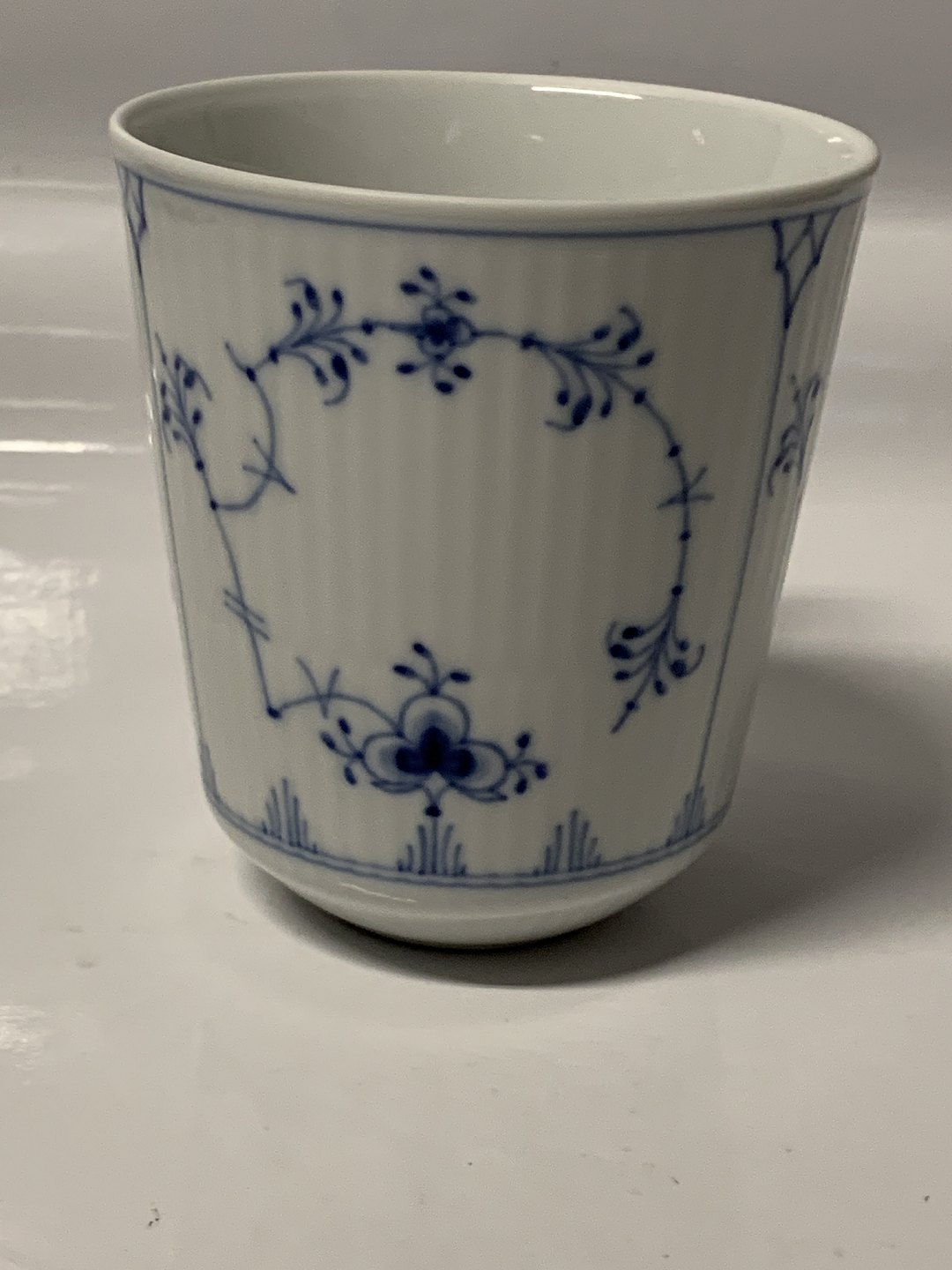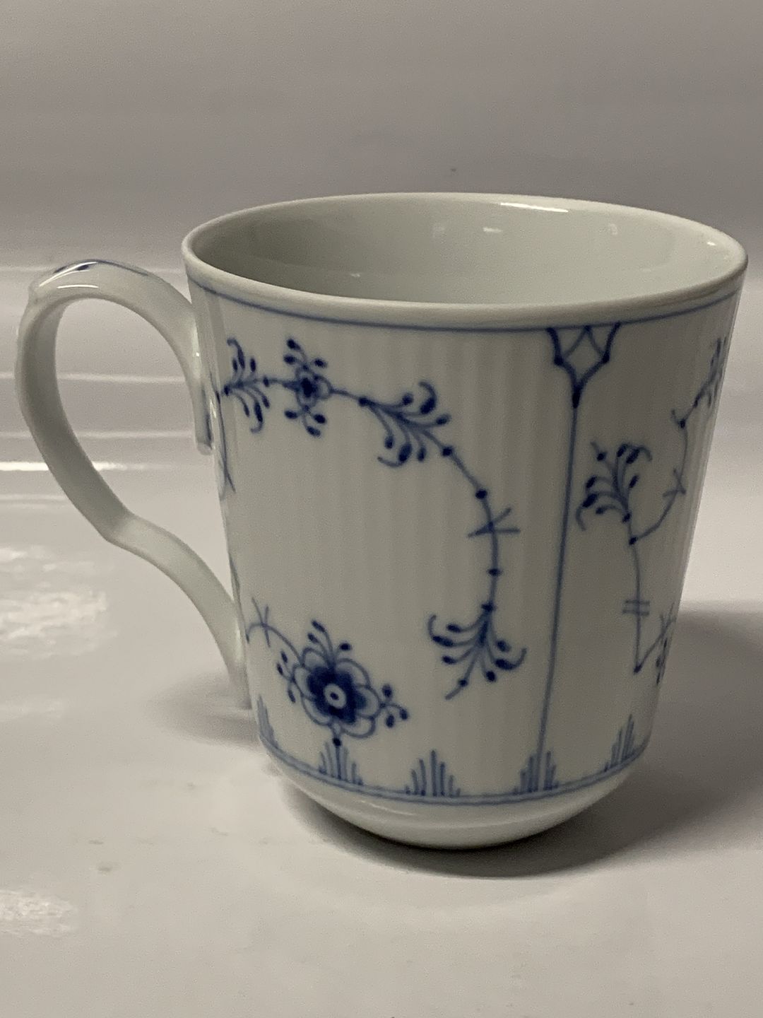Royal Copenhagen Musselmalet Riflet, KRUS Diameter 9,1 cm. Højde 10 cm. 1. sortering. Dekorationsnummer: 103 Perfekt stand Se i øvrigt vores store udvalg af kaffe-spisestel her: https://www.antikhuset.net/katindex.asp?kukat=553