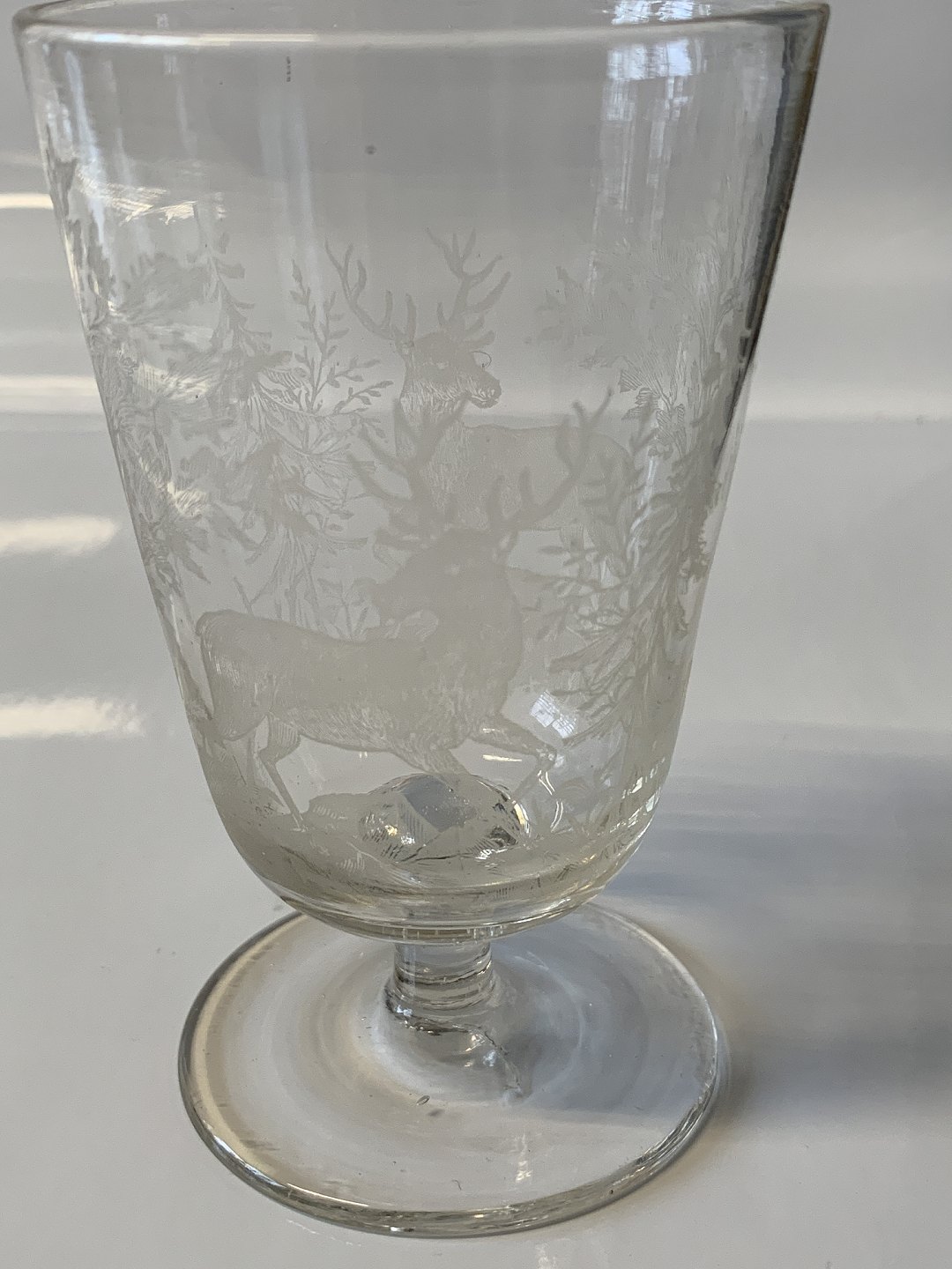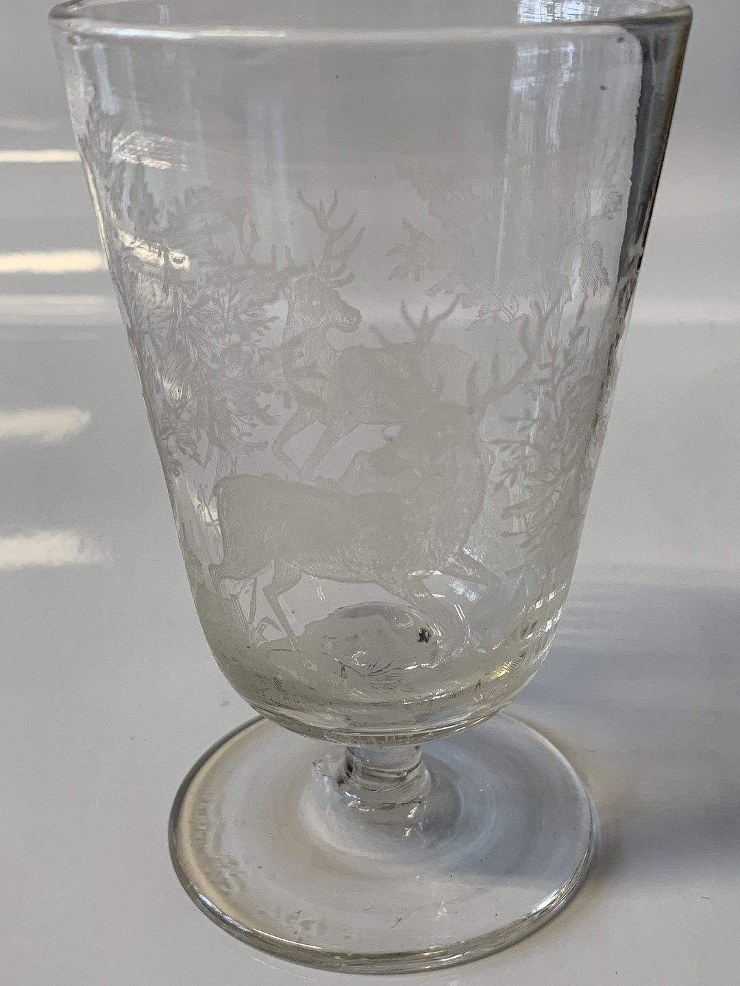Disse smukke rødvinsglas er i rigtig antik stil, med slebet mønster på glasset. Mønstret er lavet med mange detaljer, der gør glasset meget livagtigt på bordet. Hjorteglas er sjældne, så her kan du opgradere samlingen, eller måske starte en ny.