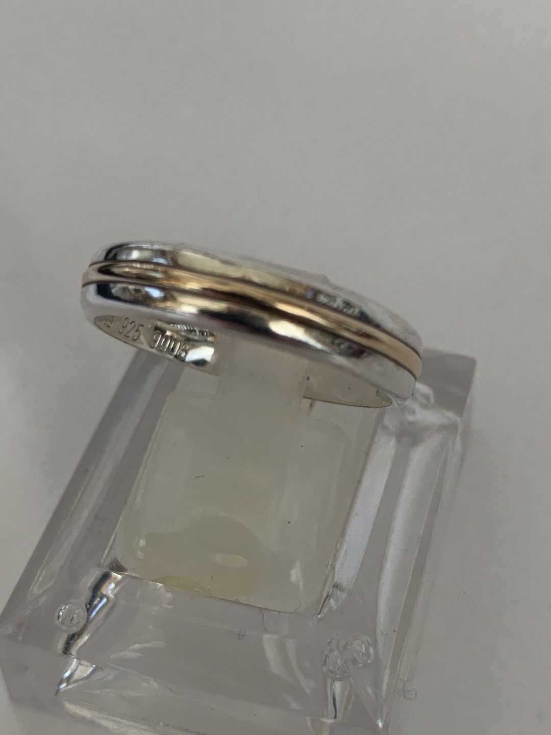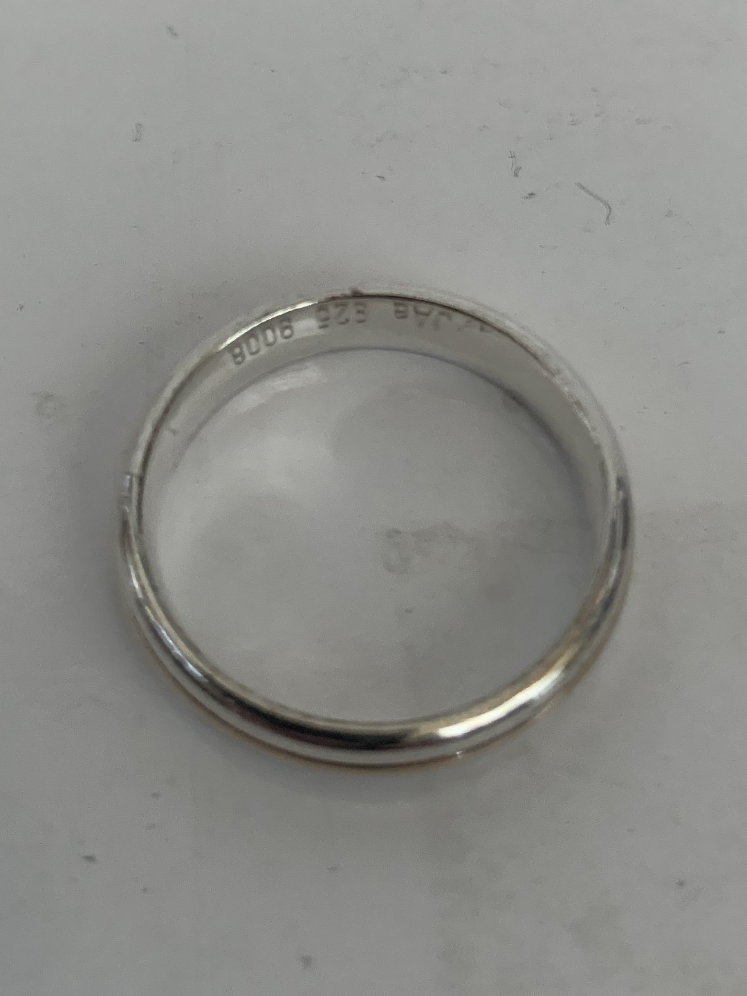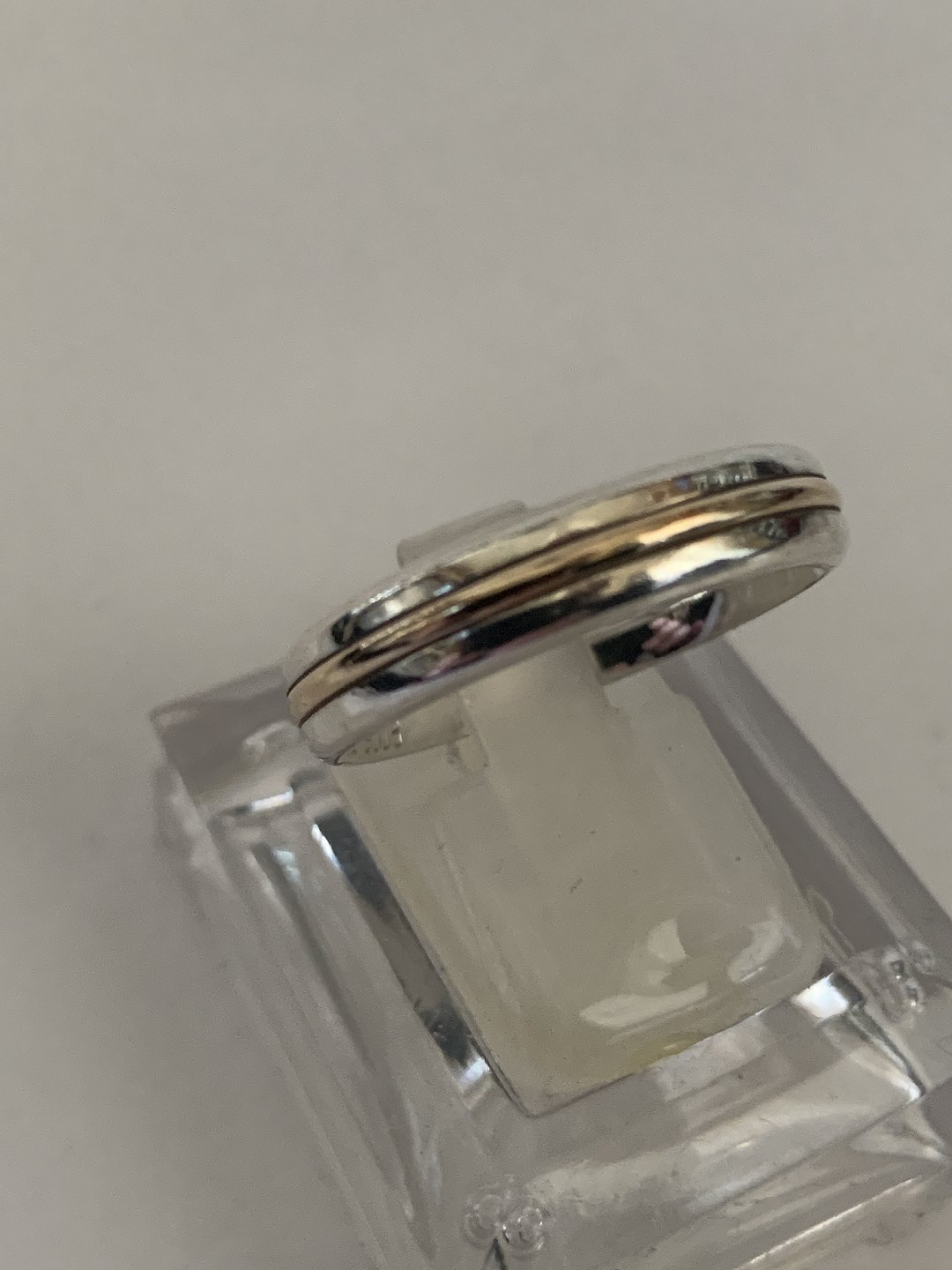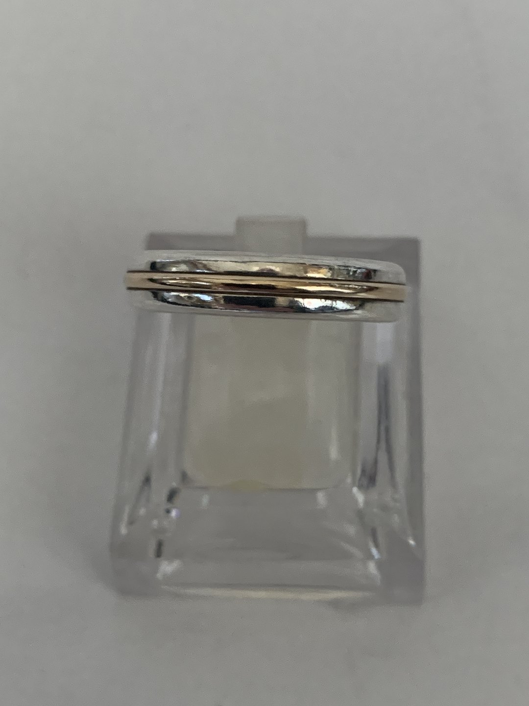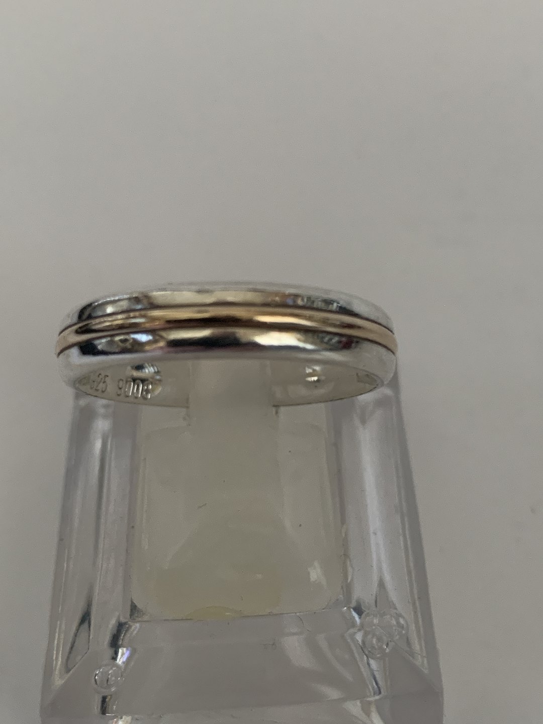 Sølvring i sterling sølv med 8 karat guld skinne. Størrelse. 63. Stemplet JAa 925S. Pæn og velholdt. Se desuden vores store udvalg af Sølvringe hos antikhuset her: https://www.antikhuset.net/katindex.asp?kukat=5780
