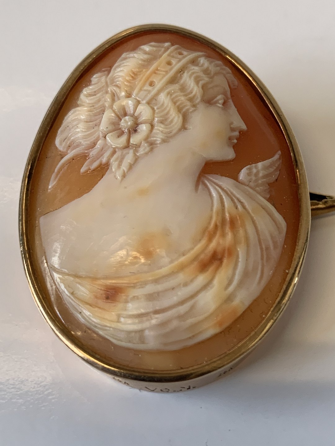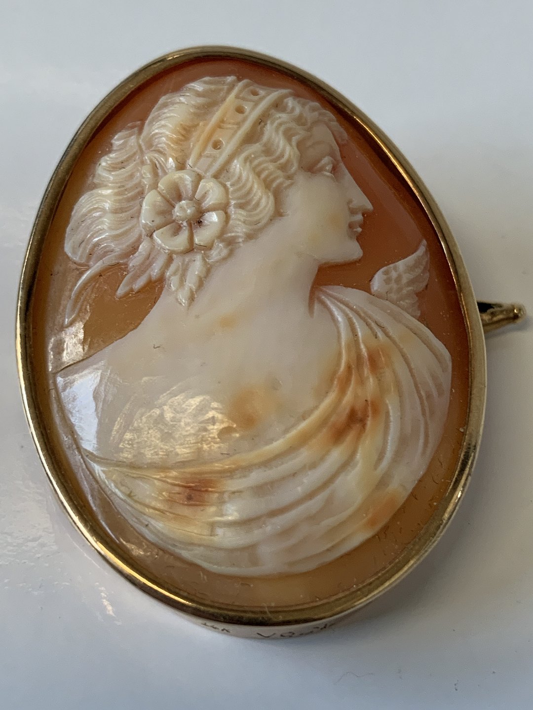 Came broche14 Karat guld,