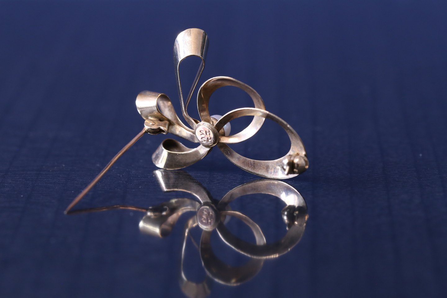 Denne smukke broche er, med sine bløde former, et smukt tilbehør til en skjorte eller cardigan. Den flotte perle i miden af brochen, giver et levende udtryk i brochen. Brug den til hverdag eller som accessoires til en festkjole.