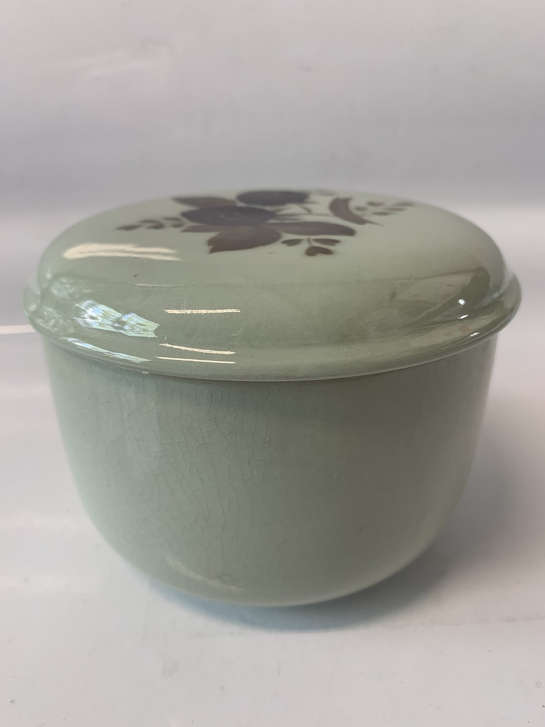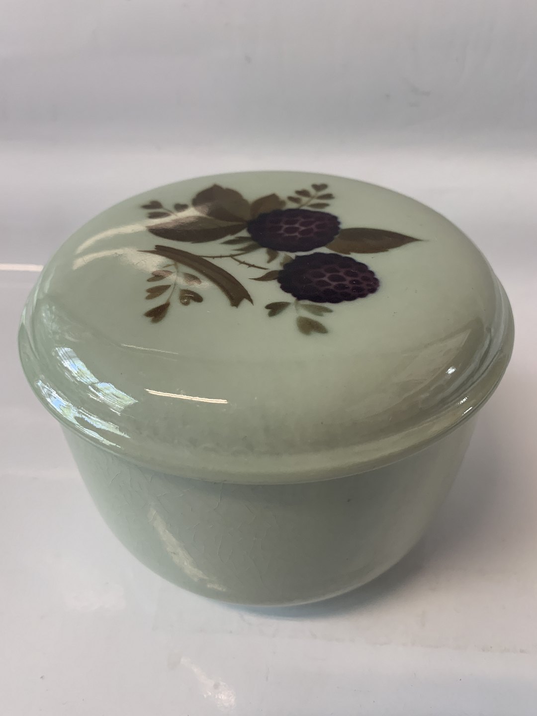Aluminia Tidemands Marmelade Krukke fra Julen 1938. Diameter 12,5 cm. Højde 8,5 cm. Der er misfarvet indvendig. Se venligst fotos.
