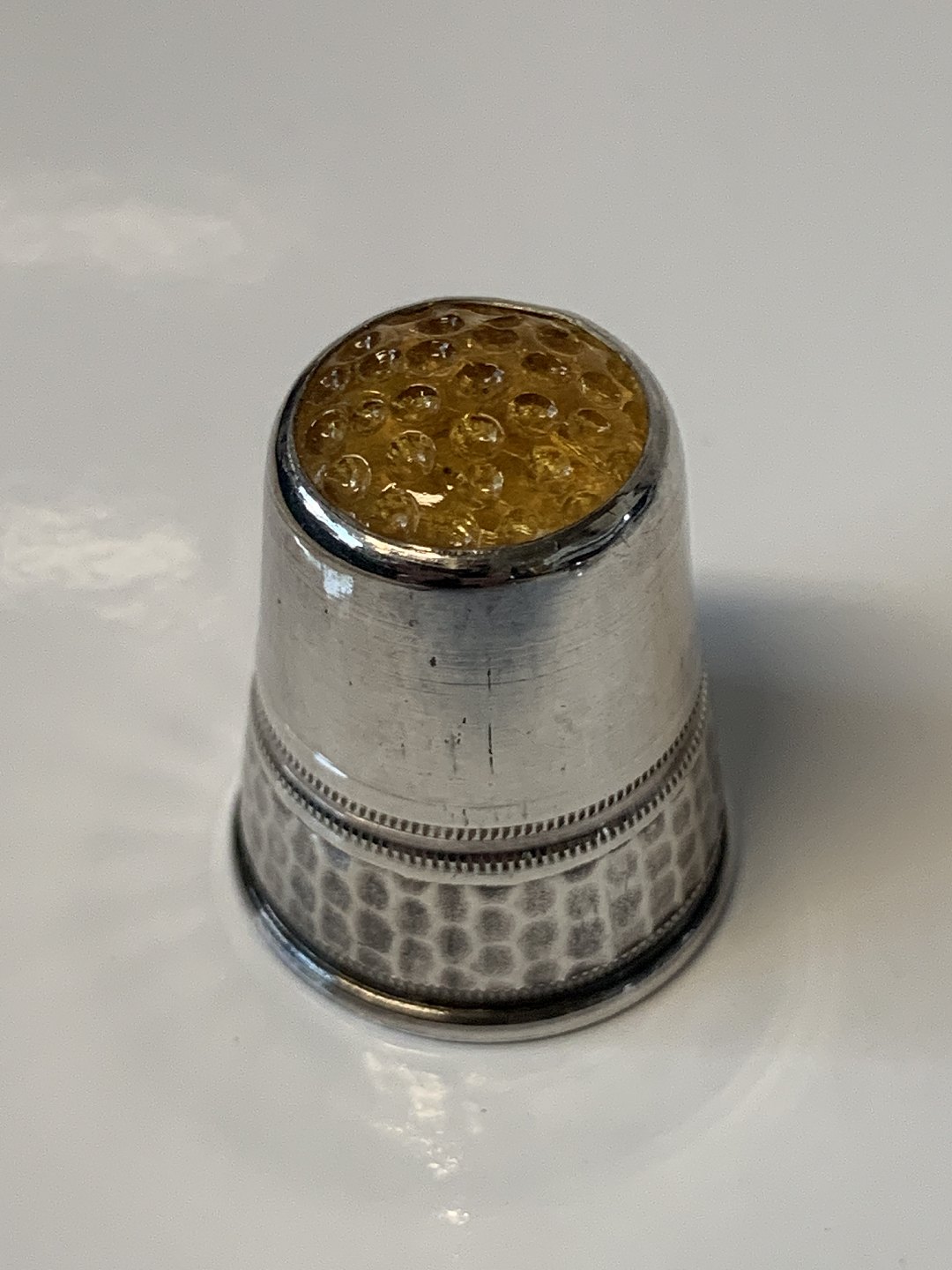 Silver finger ring with yellow flounce.