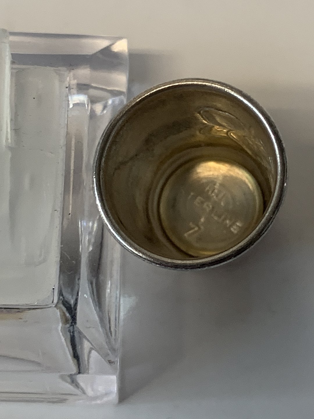 Fingerbøl af sterling sølv med rød flus.