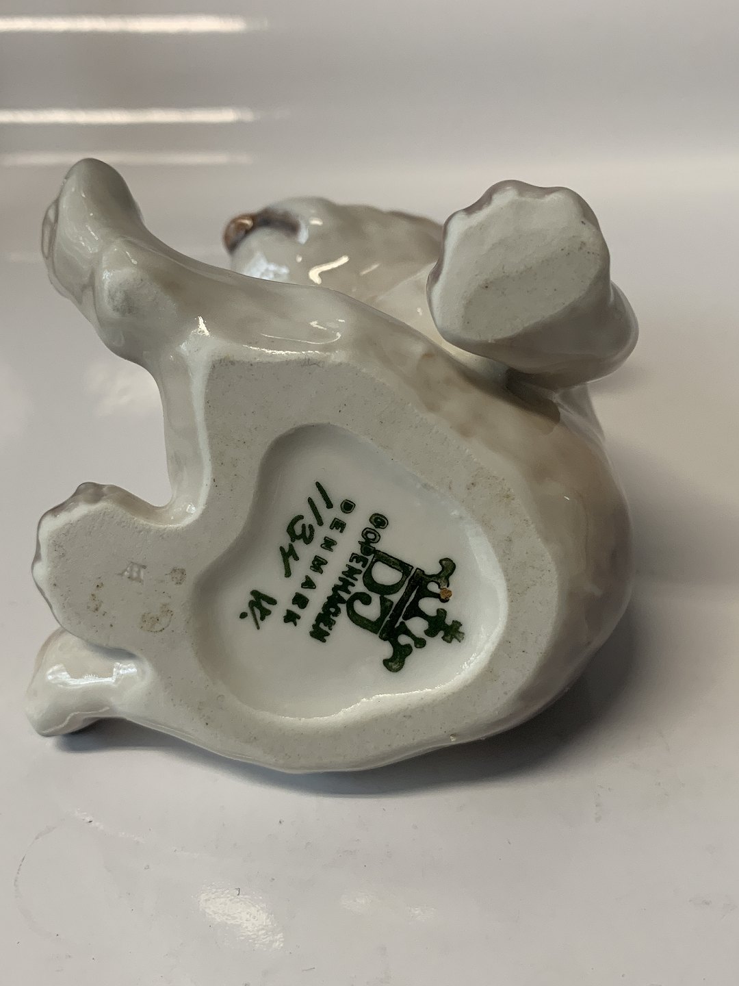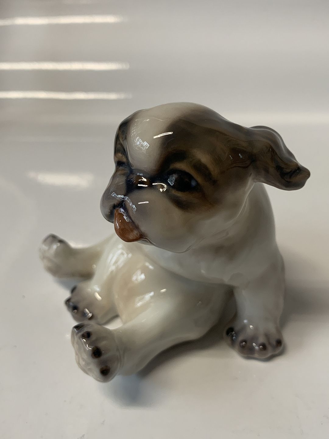 Dahl Jensen, pekingeser hvalp Dekorationsnummer 1134 Design Jens Peter Dahl Jensen Højde: 7 cm. Længde 8 cm. 2 sortering Perfekt stand.