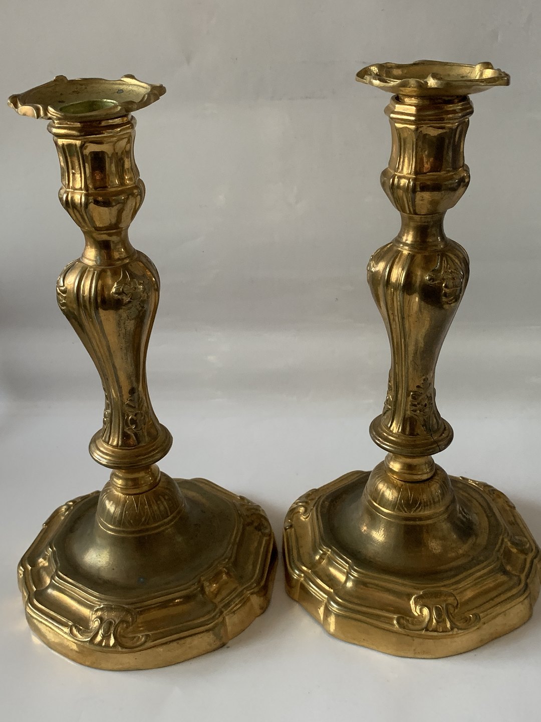 Et par antikke af Bronze med kantet fod. Højde. 26 cm. Med almindelig brugsslidtage. Pæne og velholdte.