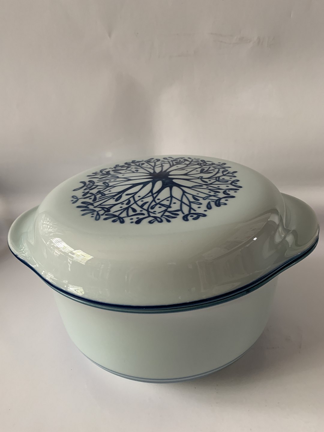 Mistletoe, Desiree, Bowl with lid and handle. Width 20.5 cm. Length with handle 24 cm Height with lid 14 cm. Manufacturer: Desiree Denmark. Well maintained condition.