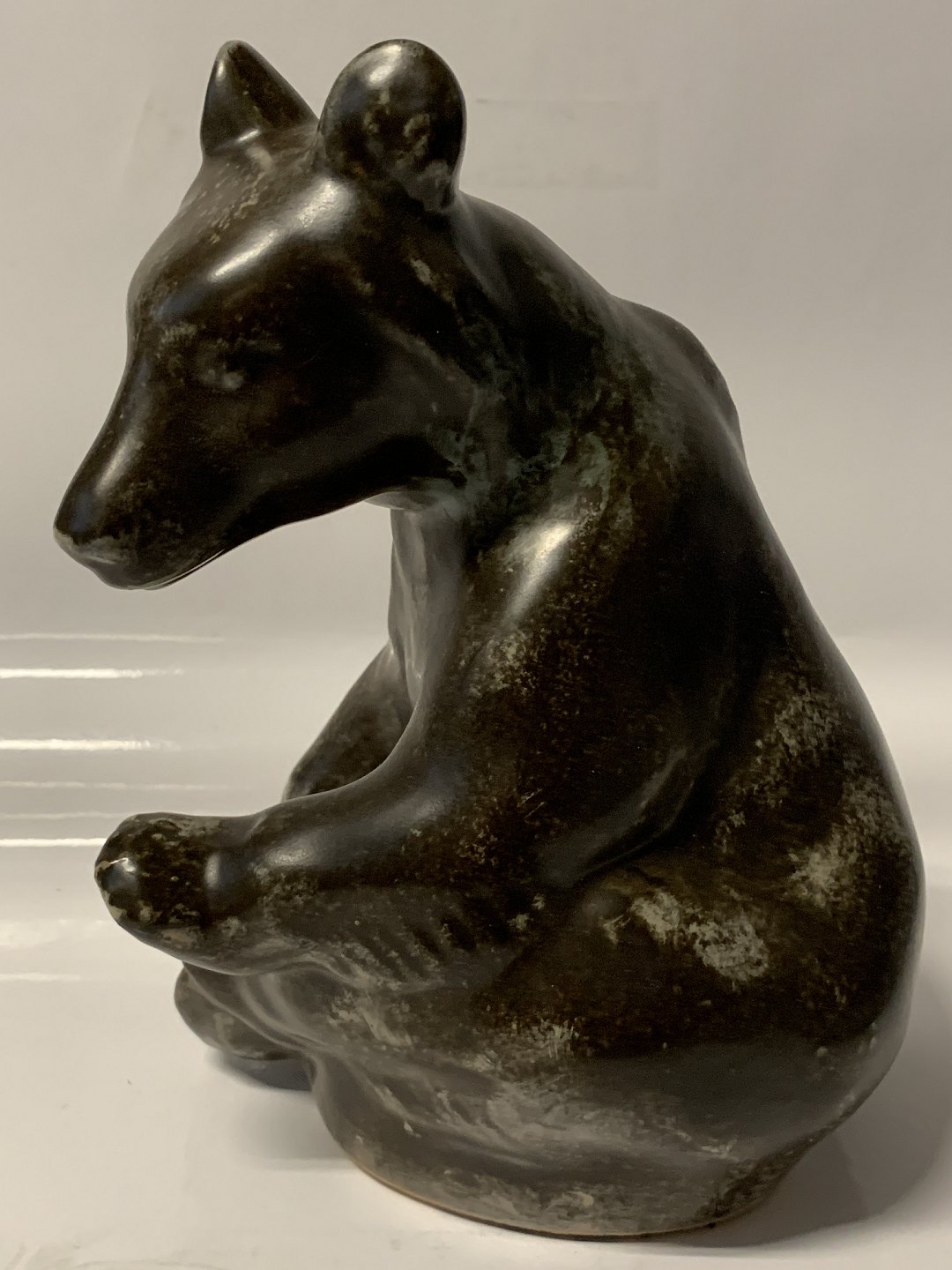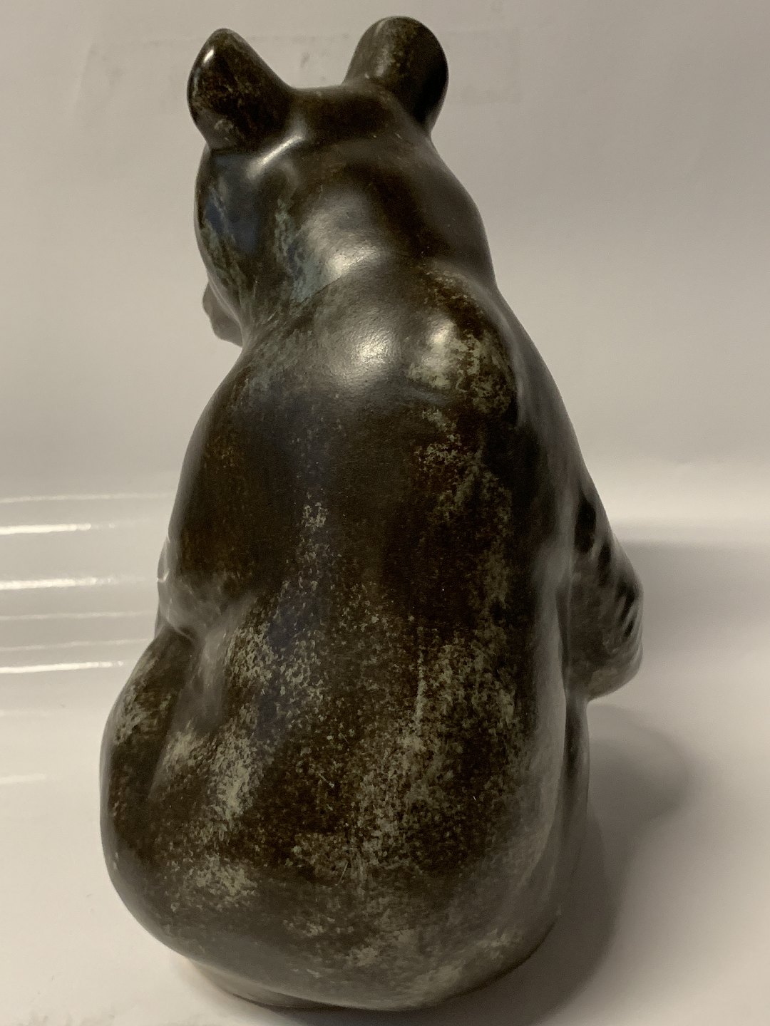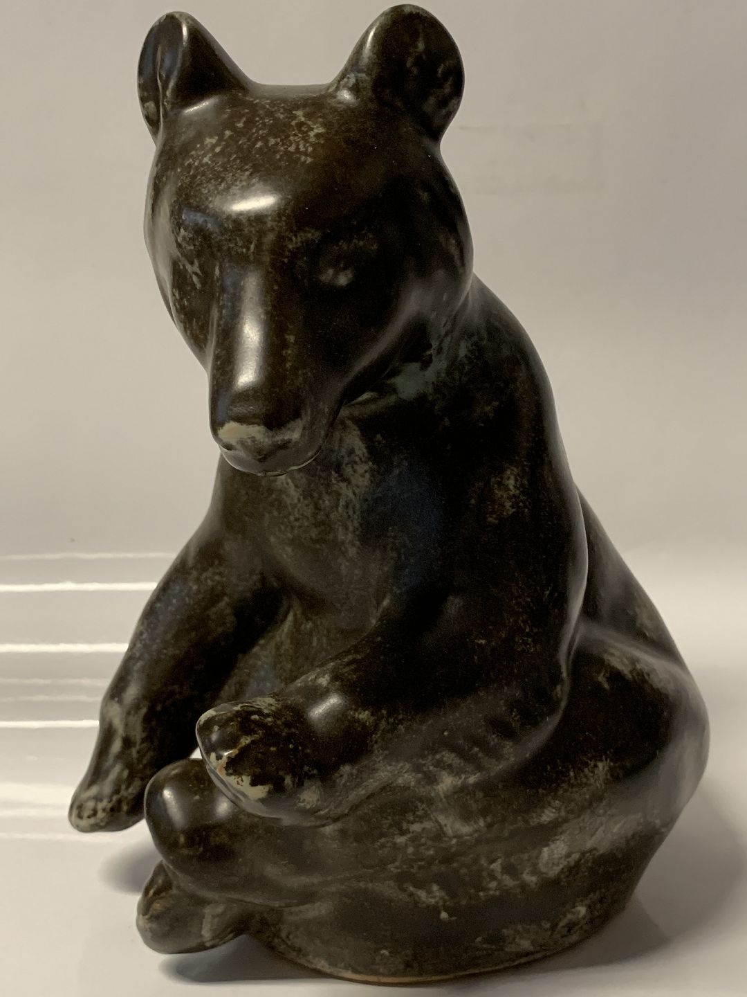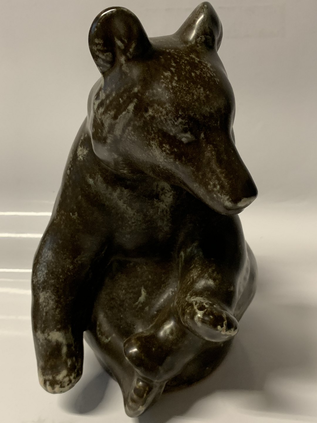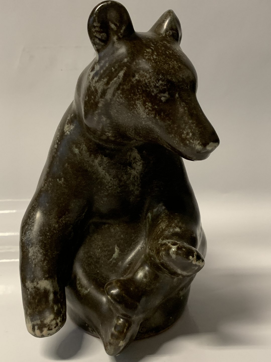Johgus, Large sitting bear, Bornholm pottery. Height: 22 cm. Decor. No. 22. Nice and well-maintained condition.