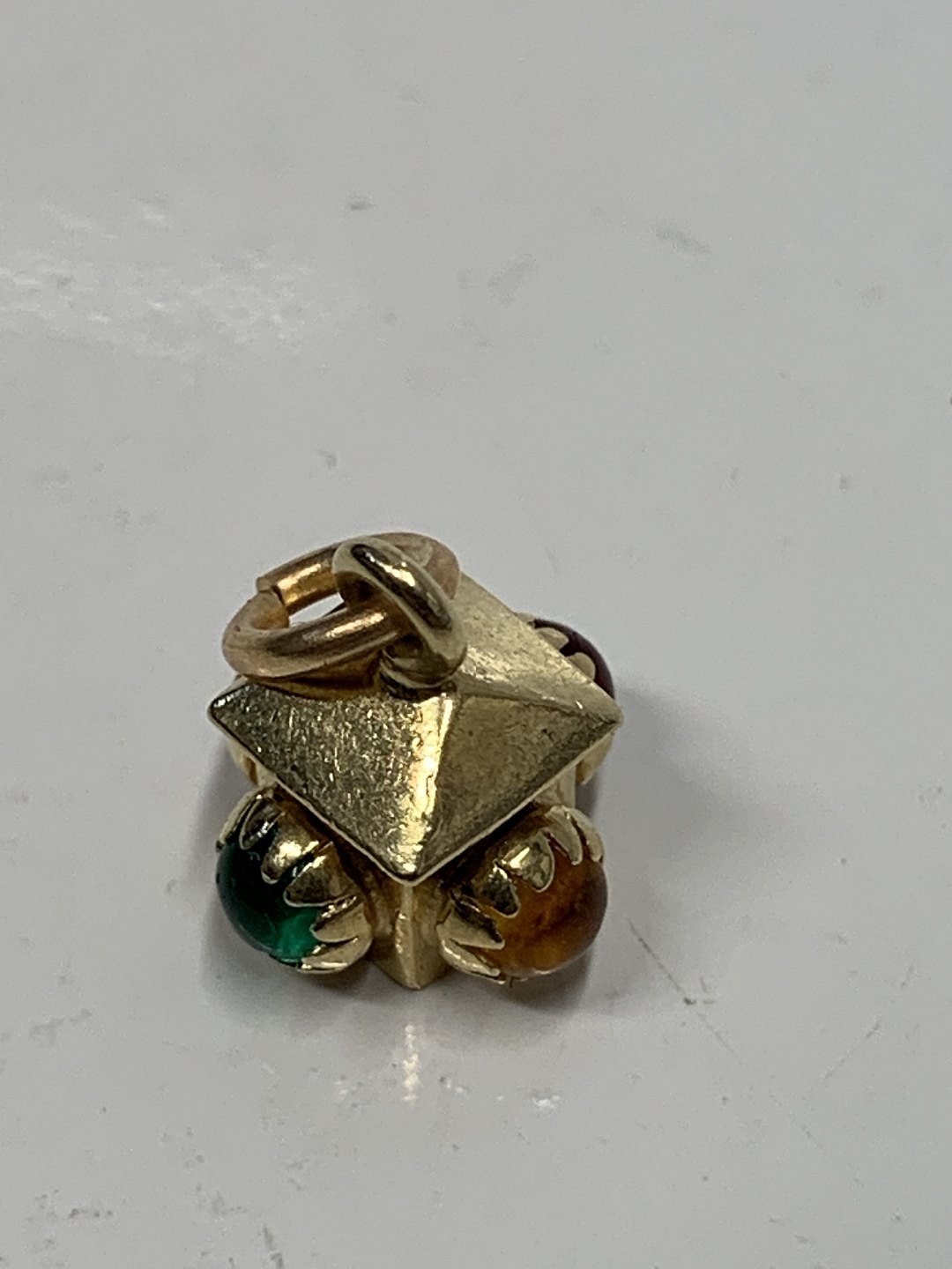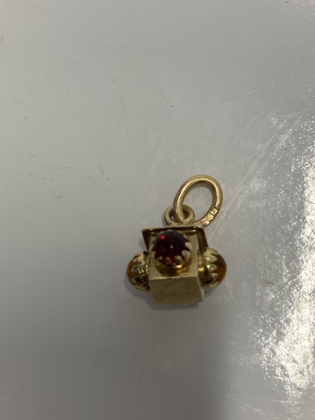 Lamp with red/yellow and green stone Pendant / Charms in 14 carat gold