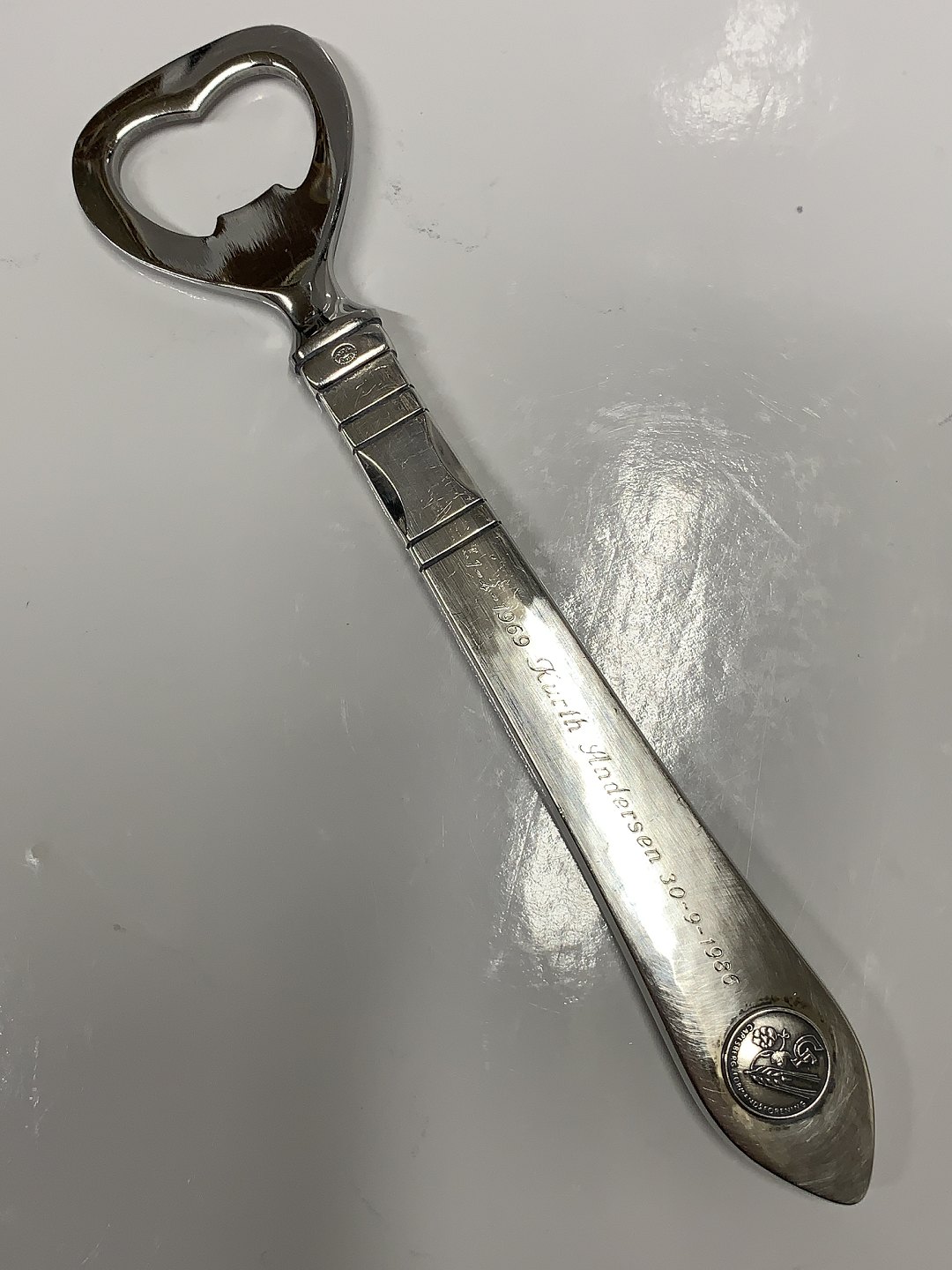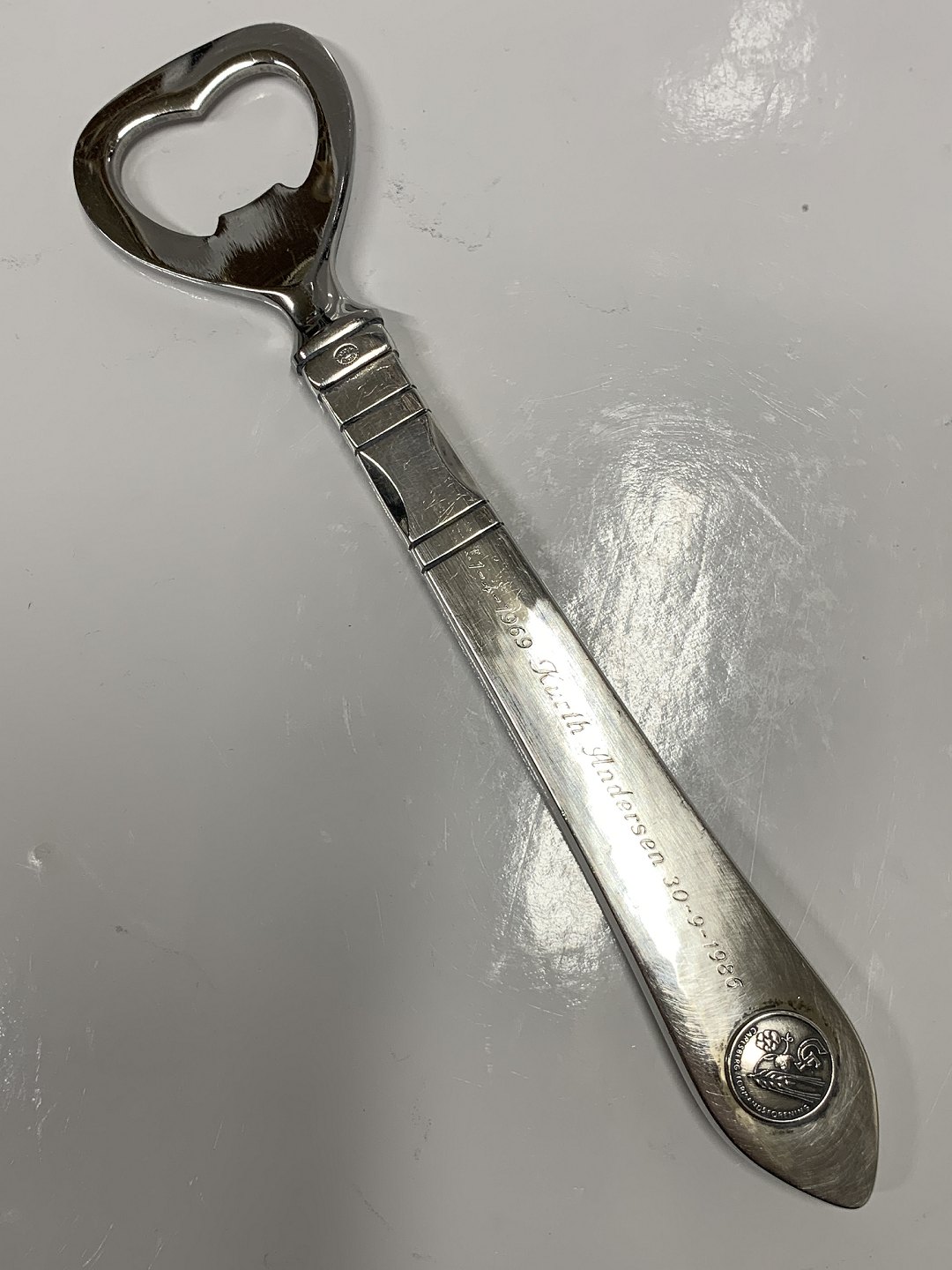 Beer Opener Antique No. 4 / Continental 4. Silver Georg Jensen. Length 16.4 cm. With engraving see photo number 4+5. Nice and well-maintained condition.