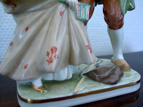 Royal Copenhagen Figur i Overglasur: Prinsessen og Svinedrengen. Flot dekoreret. Den har dekorationsnummer 1114, 1. sortering. Højde 18,5 cm, længde 12 cm. Perfekt stand.
