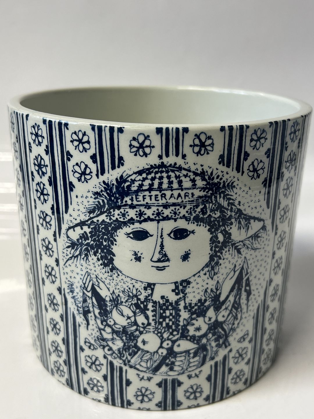 Bjørn Wiinblad (Winblad) Urtepotteskjuler, Efterår Dek.nr. 3024-699 Diameter 14,5 cm. Højde 13 cm. Producent: Nymølle Design: Bjørn Wiinblad