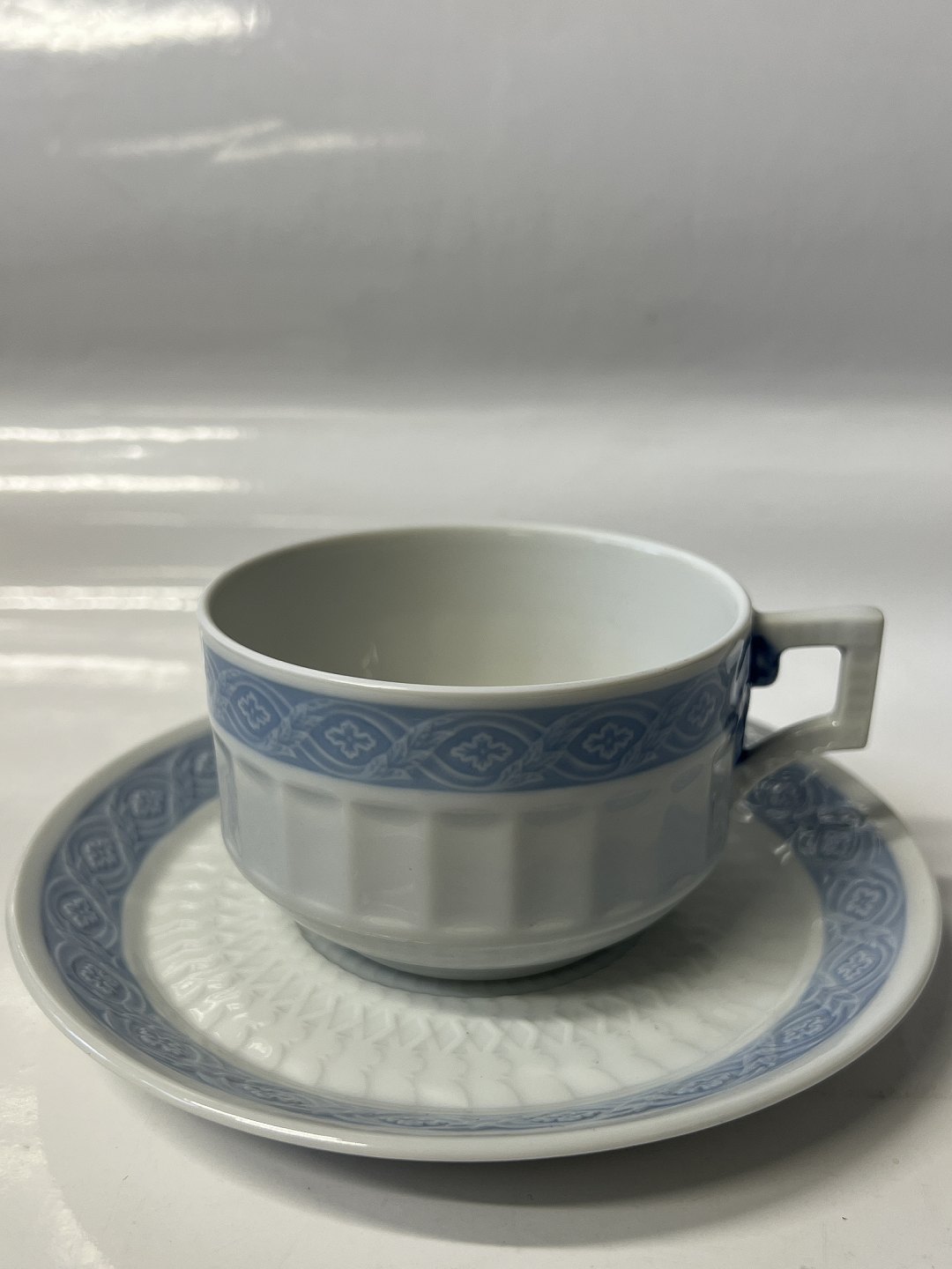 Royal Copenhagen Blå Vifte, ekstra stor morgenkop / chokoladekop med tilhørende underkop. Dekorationsnummer 072 / 073 det samme som 1212/11554. 1. sortering. Koppens diameter er 9,9 cm. Perfekt stand uden fejl.