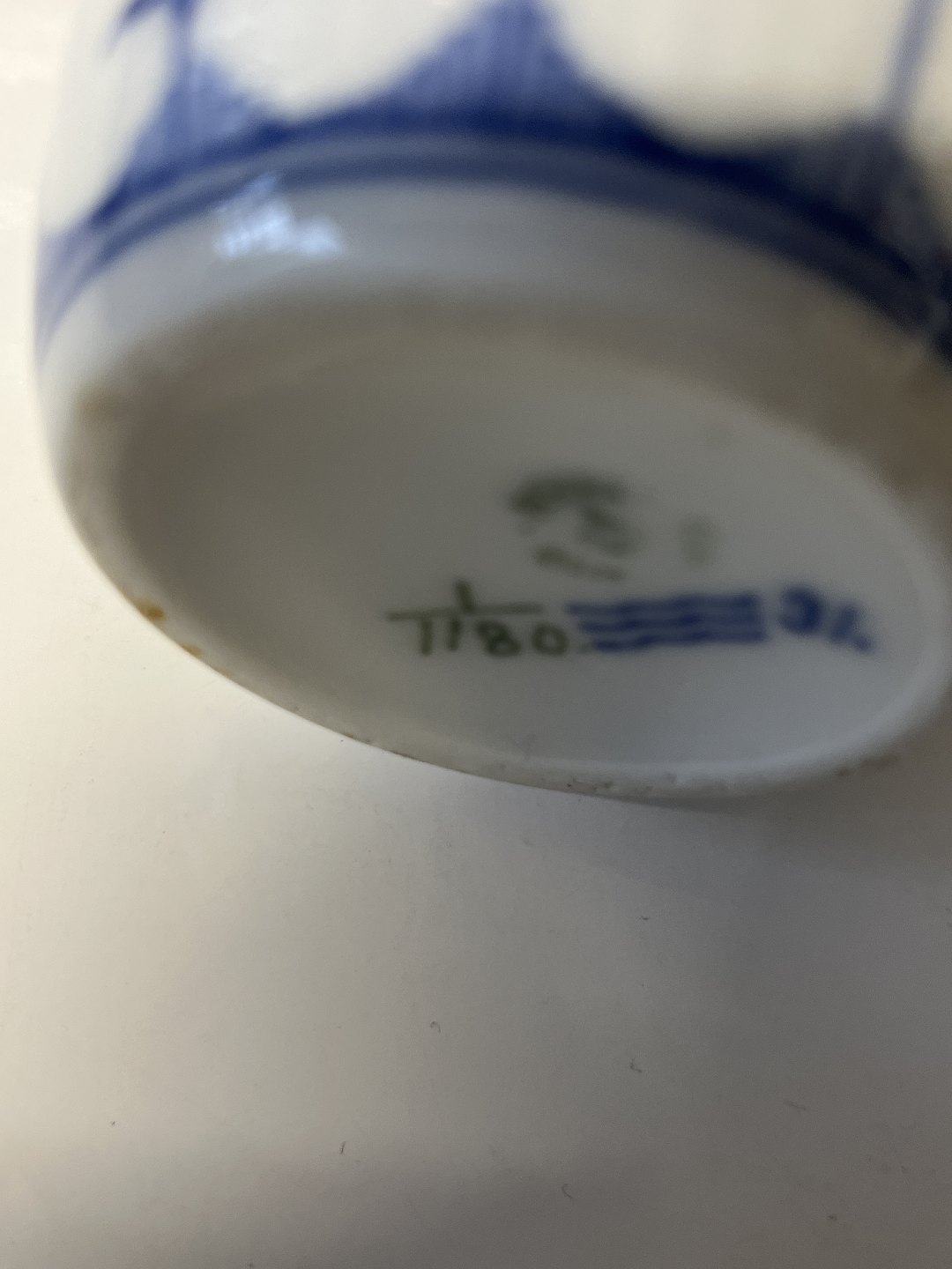 Royal Copenhagen Musselmalet Helblonde, eddikeflaske uden prop. Af fabriksmærket kan det udledes, at denne er produceret mellem 1898 og 1923. Dekorationsnummer 1/1180. 1. sortering. Højde 13,5 cm. Perfekt stand uden fejl.