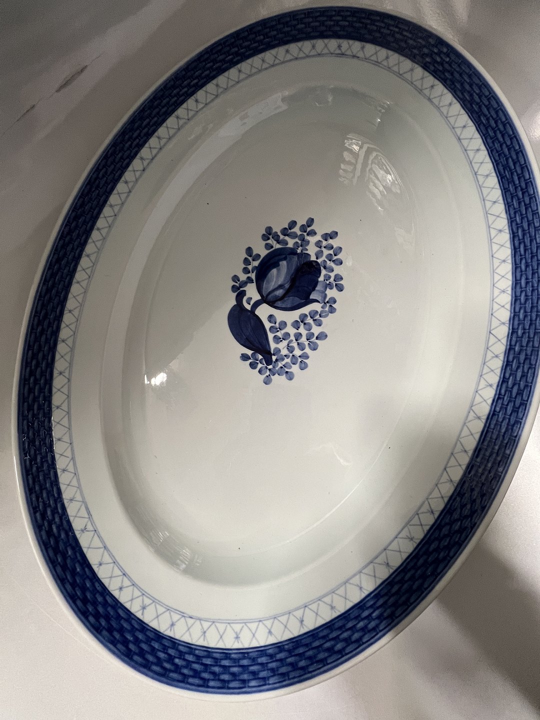 Aluminia Tranquebar, stort stegefad. (Royal Copenhagen) Dekorationsnummer 11/931. 2. sortering. Længde 50,5 cm. Bredde 36. Pæn stand.