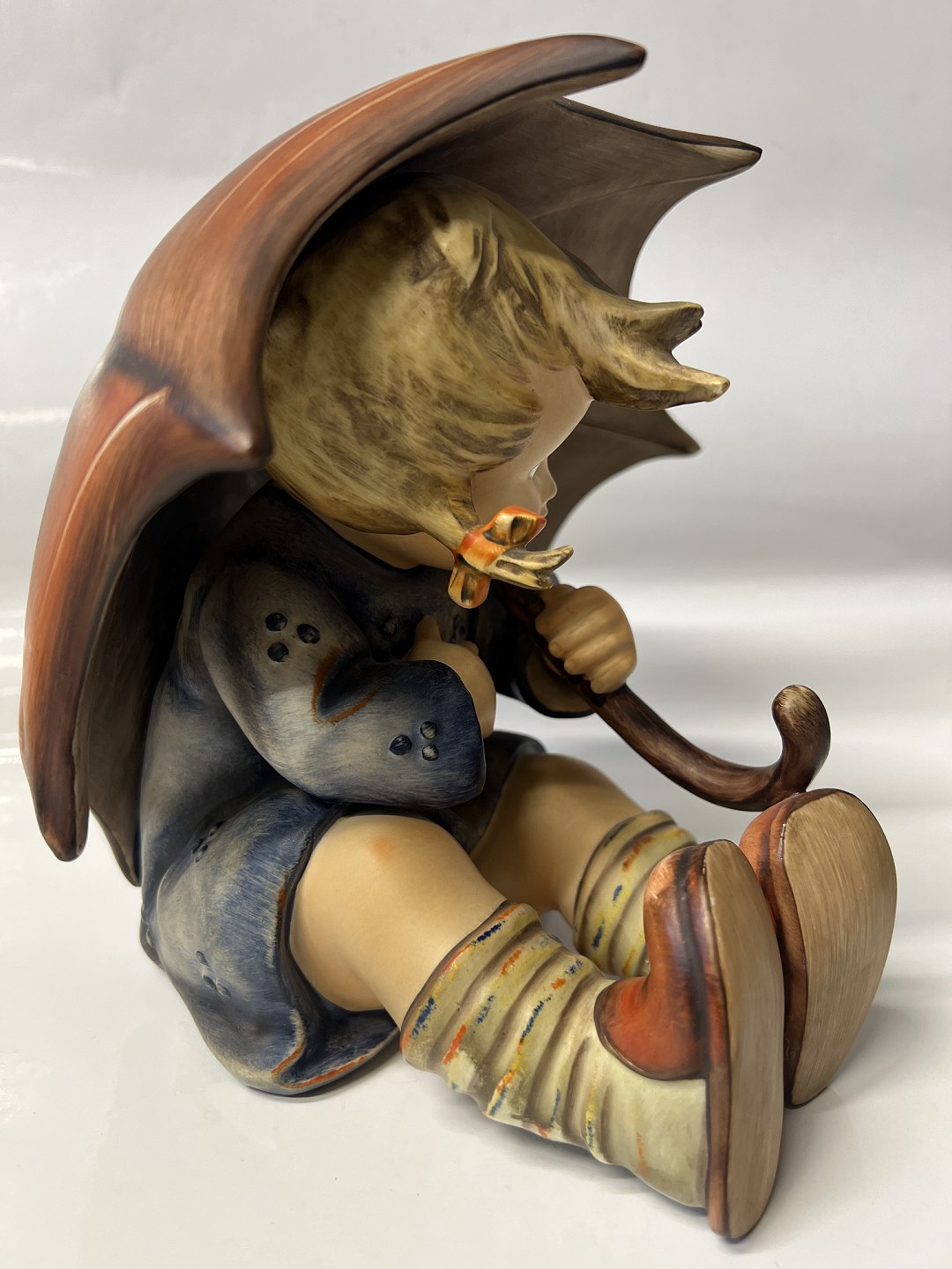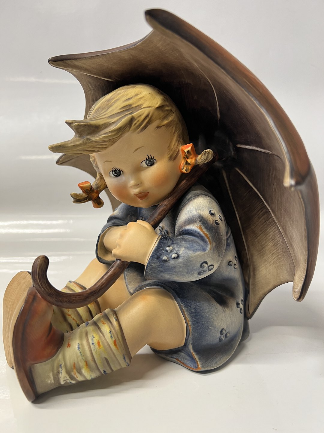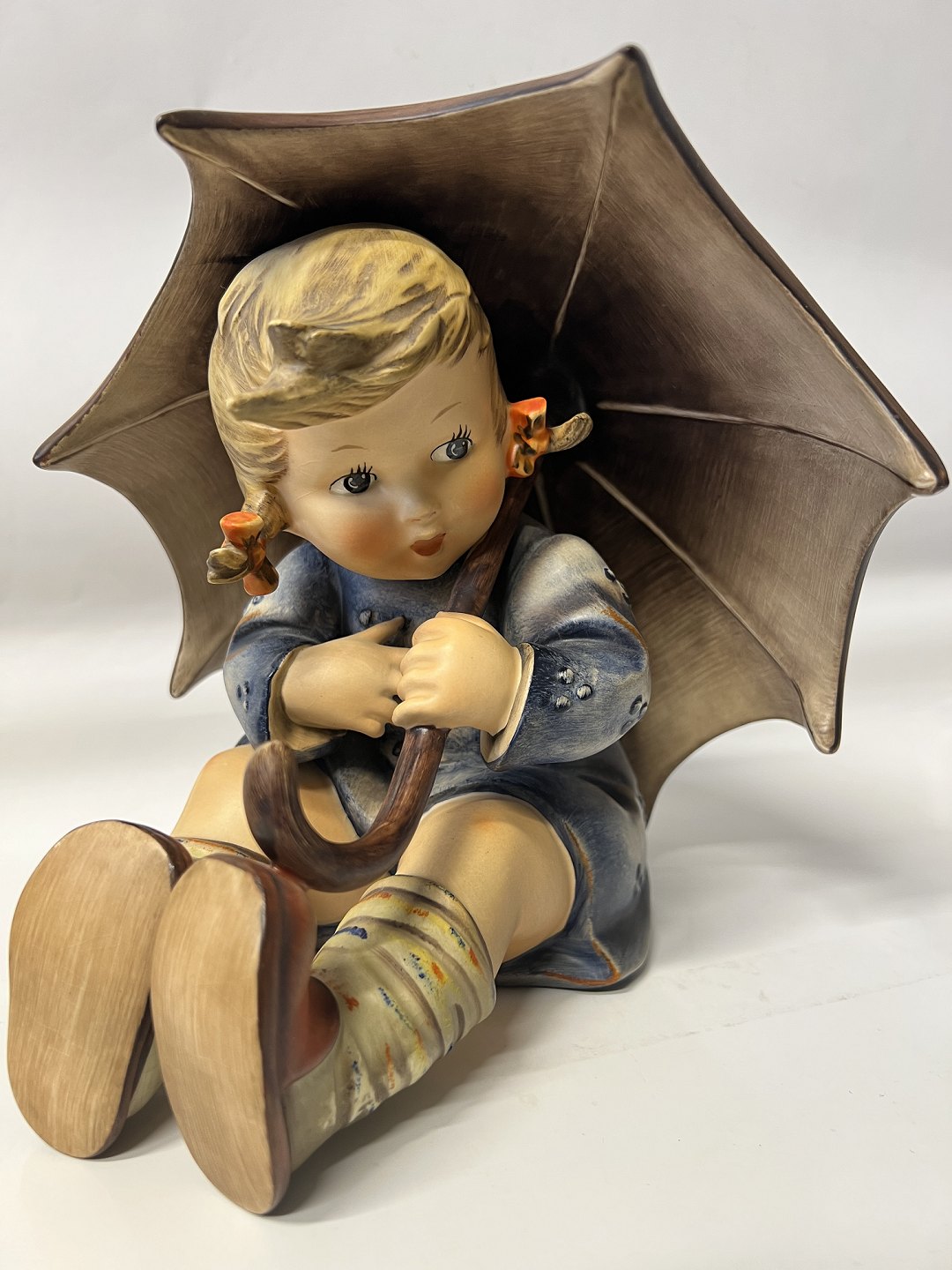 Hummel / Goebel figur: Siddende pige med paraply. Dekorationsnummer 152 B. Højde 20 cm. Produceret År 1951. Goebel Tyskland stoppede produktionen af Hummel figurer oktober 2008. Flot og velholdt stand.