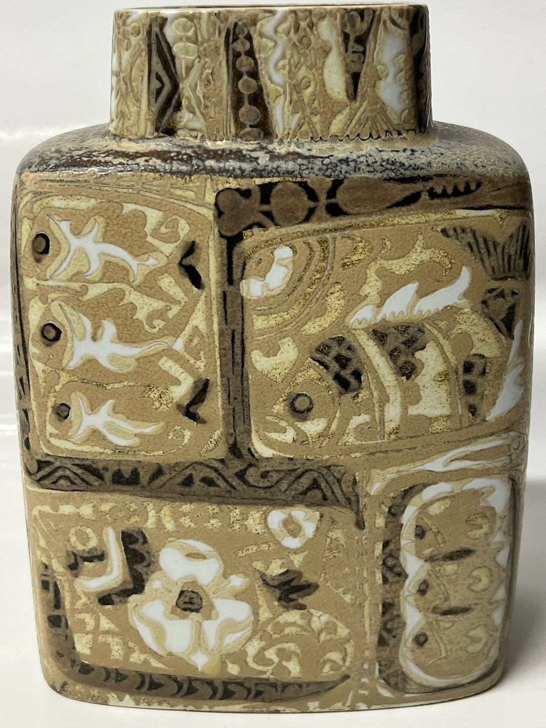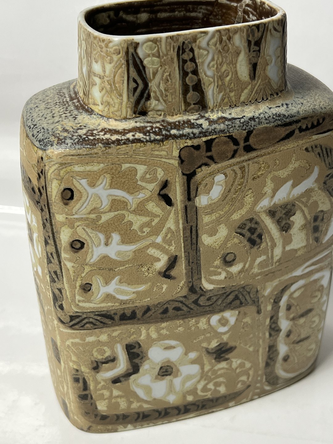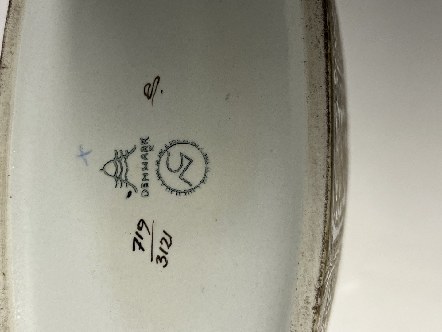 Oprindeligt var Baca og Tenera tegnet af kvinder, ansat hos Aluminia, denne vases dekoration er tegnet af Nils Thorsson