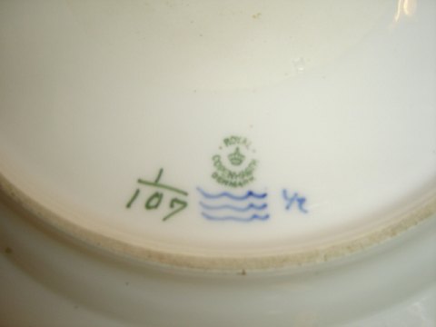 Kongelig Musselmalet Riflet, Stort rundt fad Dekorationsnummer 107 eller (1101376 nyt nummer) Diameter 32,5 cm. 2. Sortering Perfekt stand