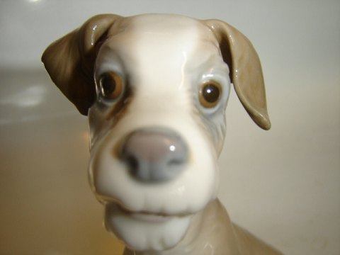 Hvid porcelænsfigur af kongepuddel, siddende. Flot