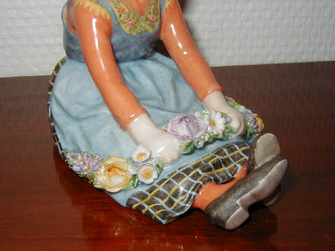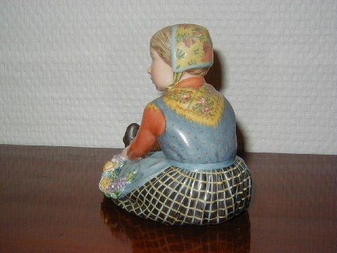 Rare Royal Copenhagen Overglaze Figure: Girl from Jutland Decoration number 12421 Factory first Height 9 cm. Length 11 cm.