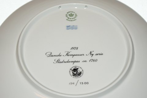 Royal Copenhagen Compass Platte, Ship Compass about: 1760 Dek. No 83 / 1500 Year: 1978. Diameter: 20 cm. Perfect condition.