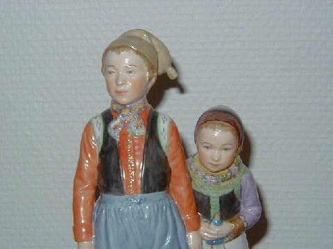 Royal Copenhagen Overglaze Figurine: Two Children in Traditionel Customes. Decoration number 12106, factory first, height 22 cm., length 12.5 cm. Perfect condition.