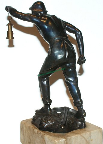 Bronze figure, Miner with lamp Height 24.5 cm. Base of marble: 11 x 9 cm. Beautiful and well maintained condition.