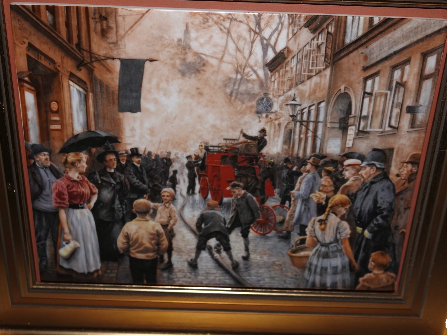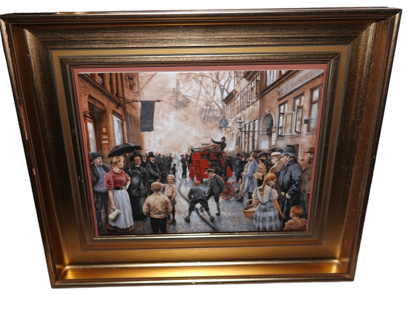 Bing & Grondahl, porcelain painting after painter by Paul Fischer - Ildløs i Skindergade.