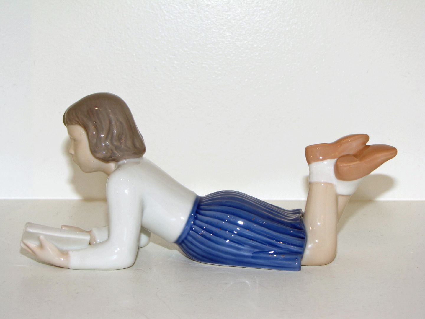 Bing & Grøndahl Figur, Liggende pige, der læser i bog - kaldet Merete.