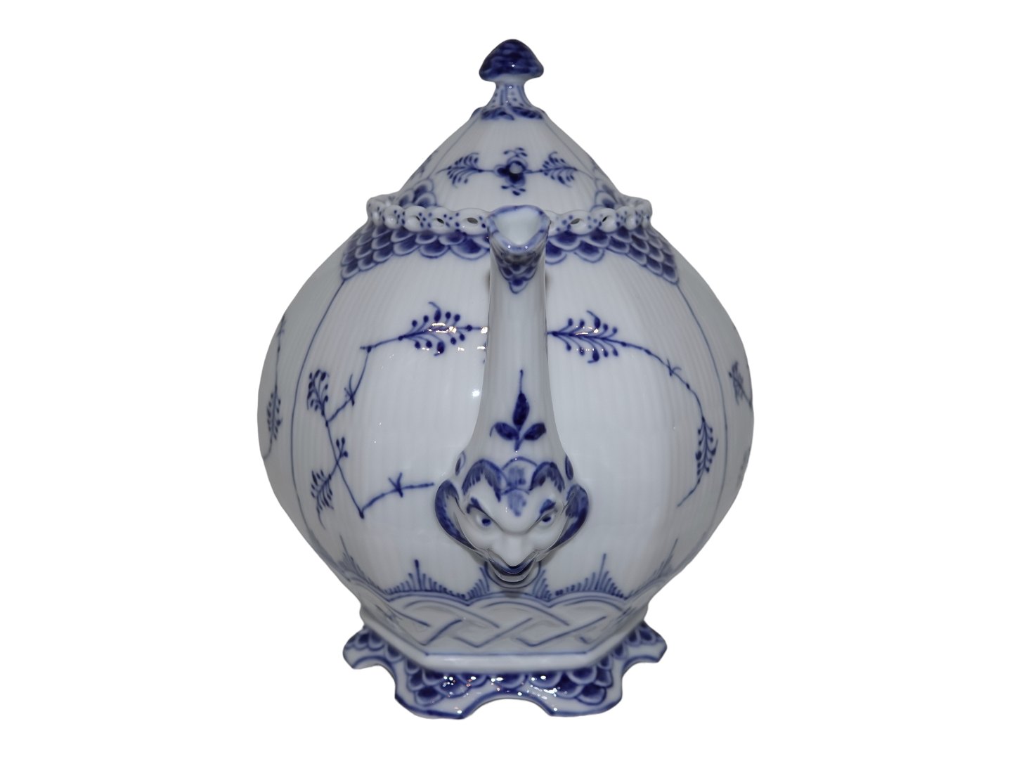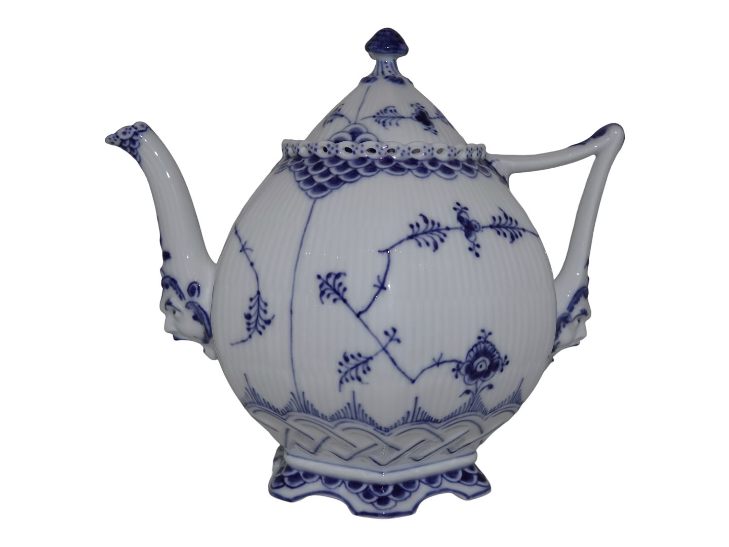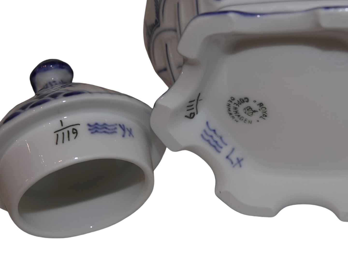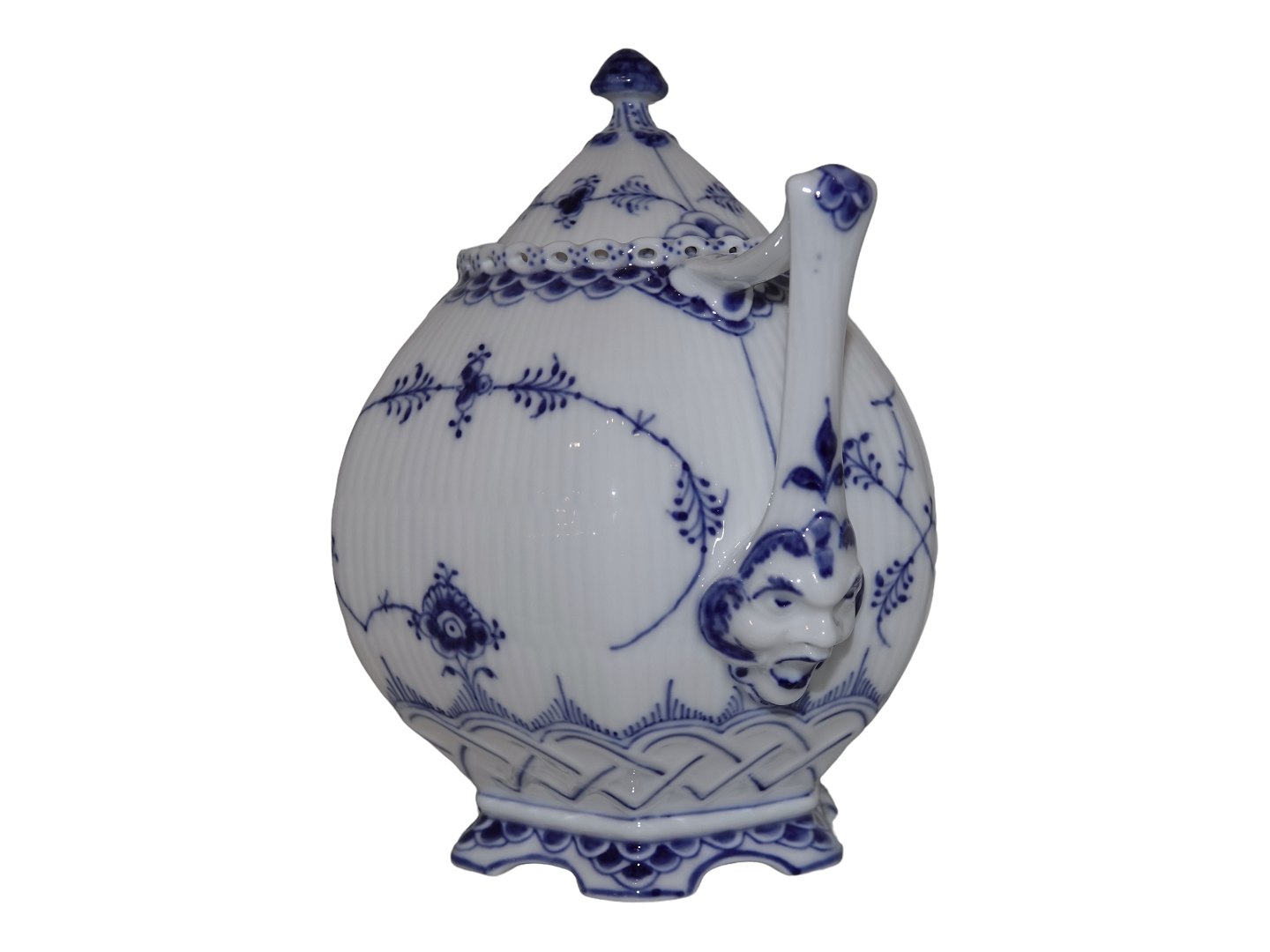 Royal Copenhagen Musselmalet Helblonde, stor tekande med djævlehoveder på hank og på tuden.