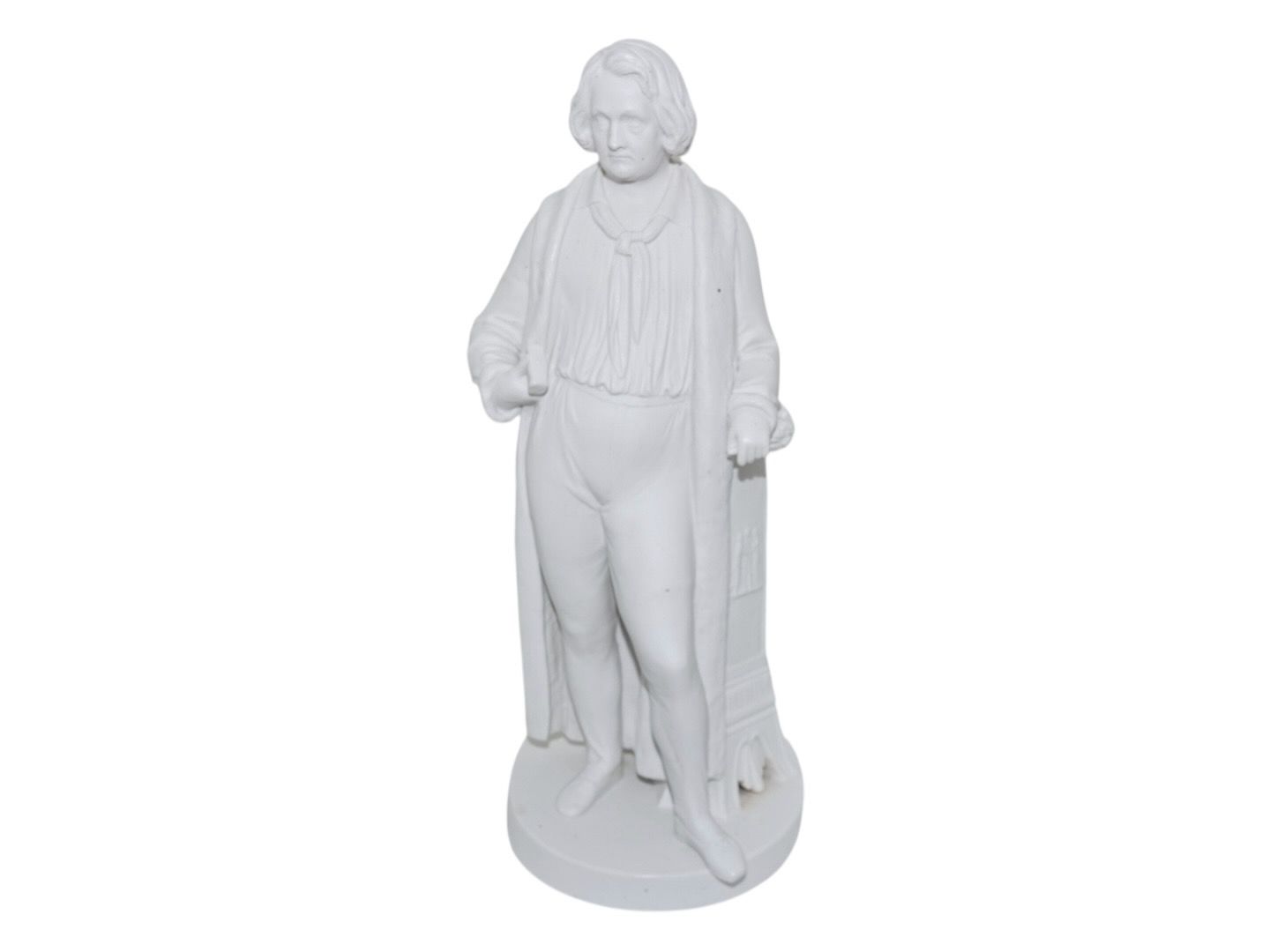 Royal Copenhagen bisquit figur af mand efter Thorvaldsen. 1. sortering. Højde 33,0 cm. Der mangler en stump ved den ene hånd, se nærfoto ellers fin og fejlfri stand.