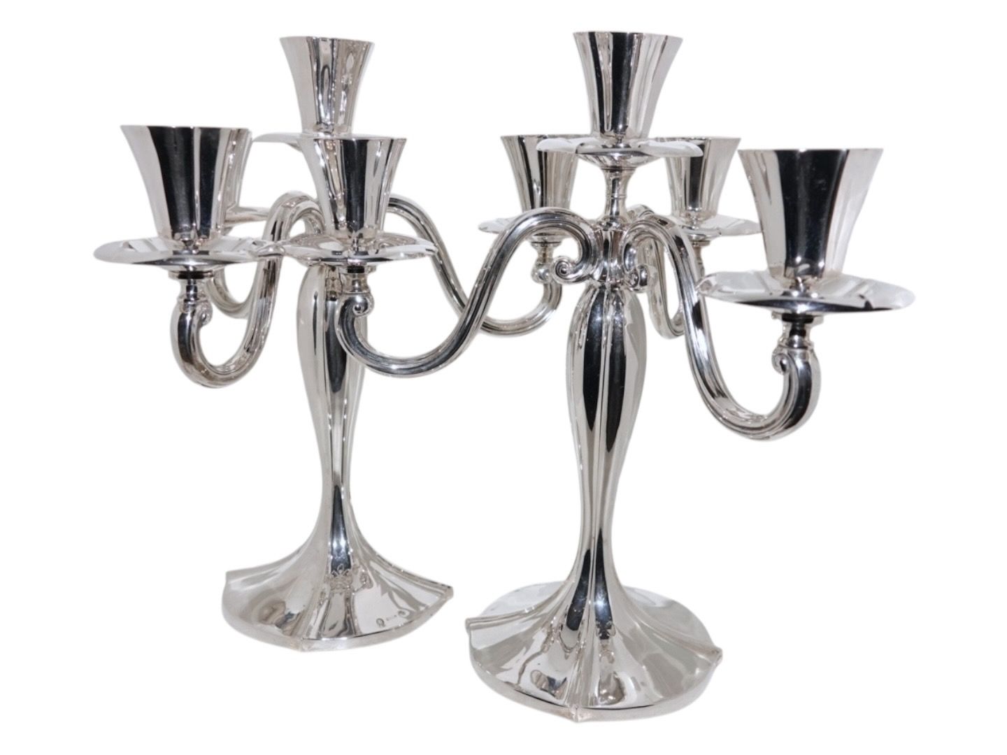 Danish silver, pair of four-armed candlelight holders from 1929.