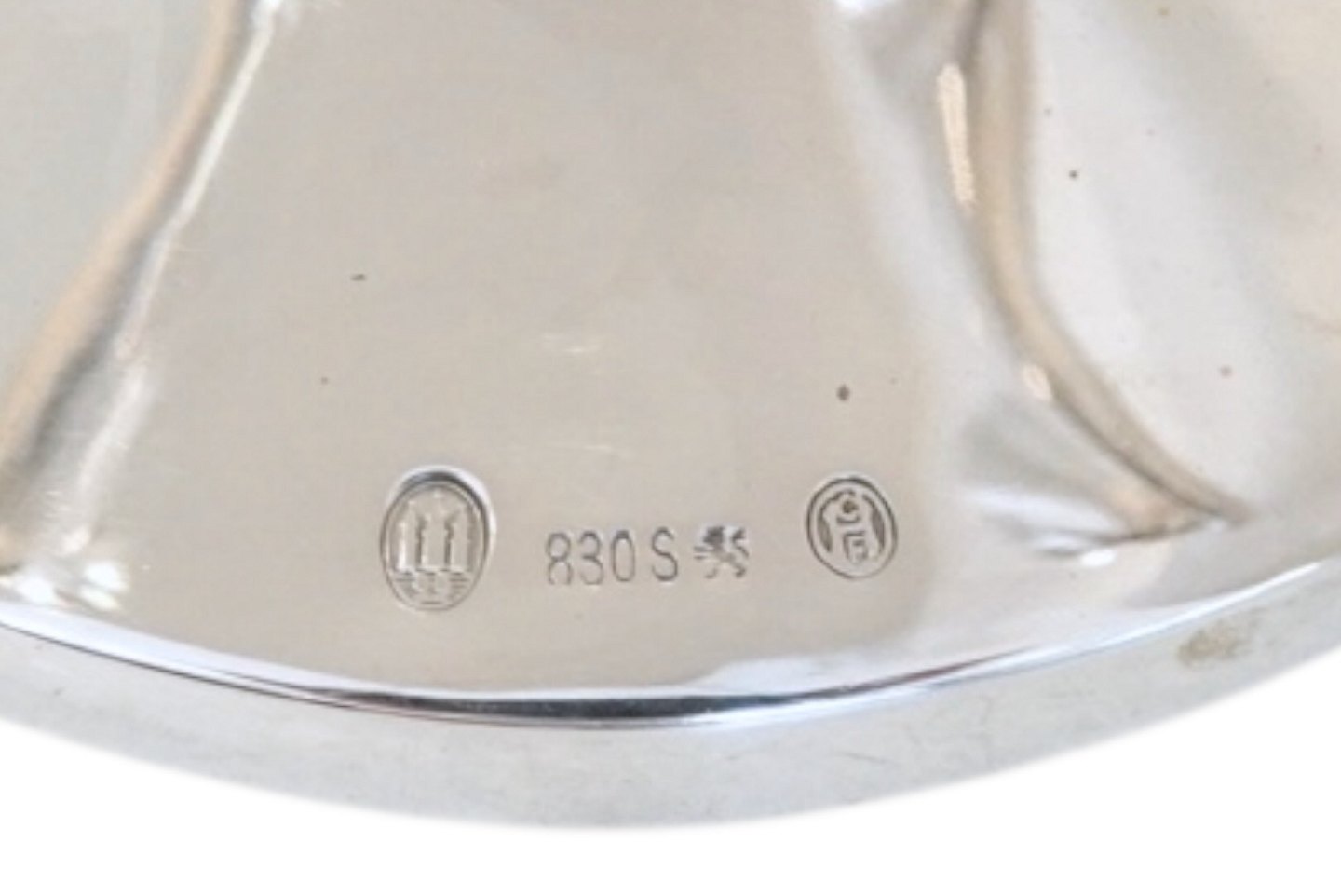 Hallmarked with unknown silversmith mark, "830S" and The Three Towers (Danish silver hallmark) and 29 (1929).