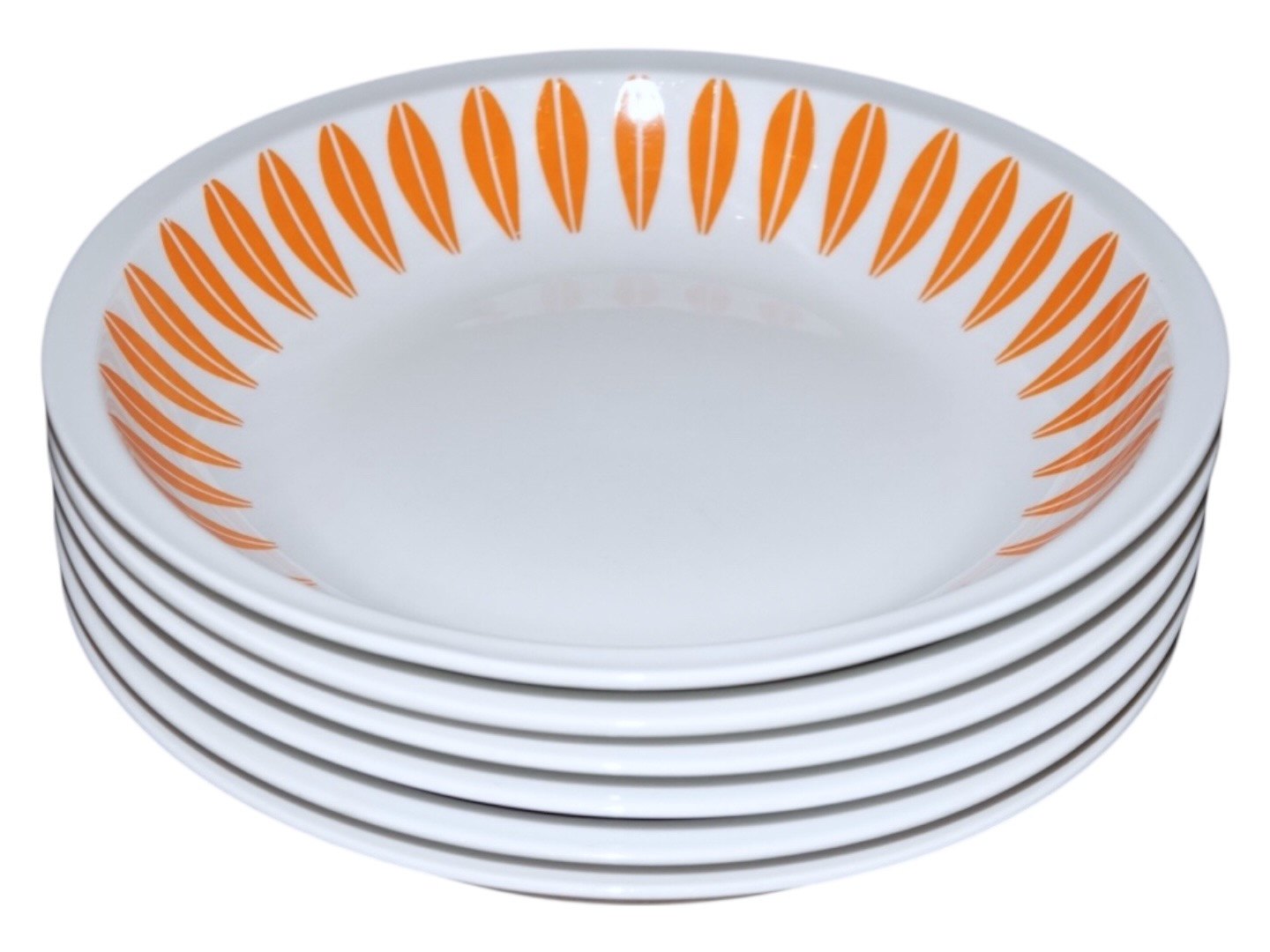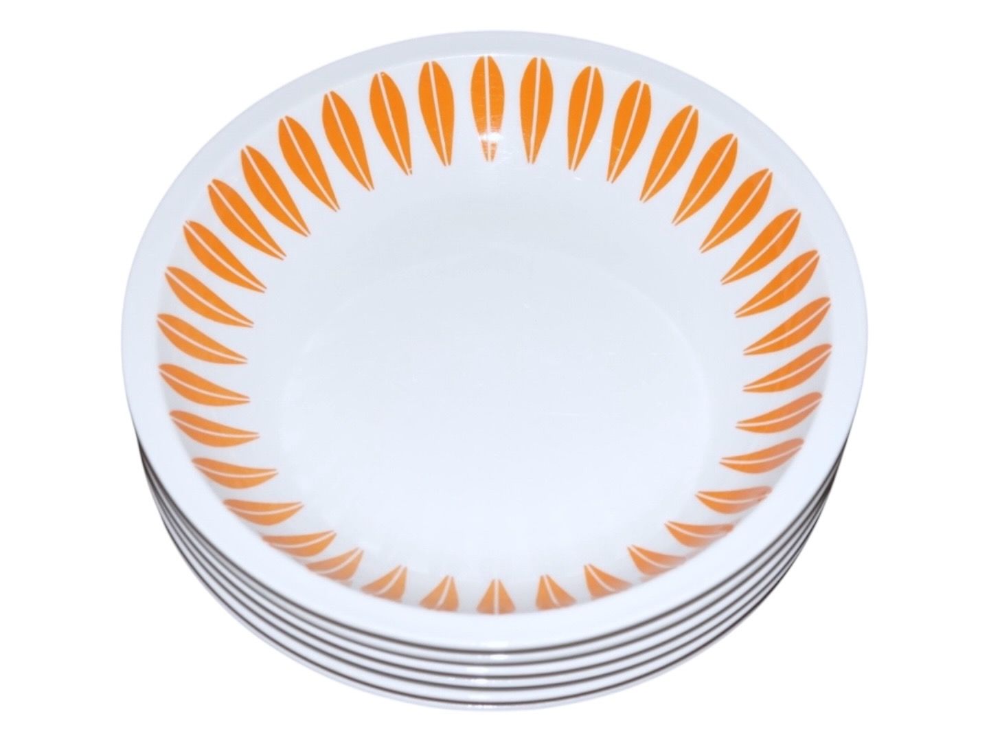 Lyngby Lotus, lille dyb orange tallerken. 1. sortering. Diameter 20,1 cm. Velholdt stand uden fejl.