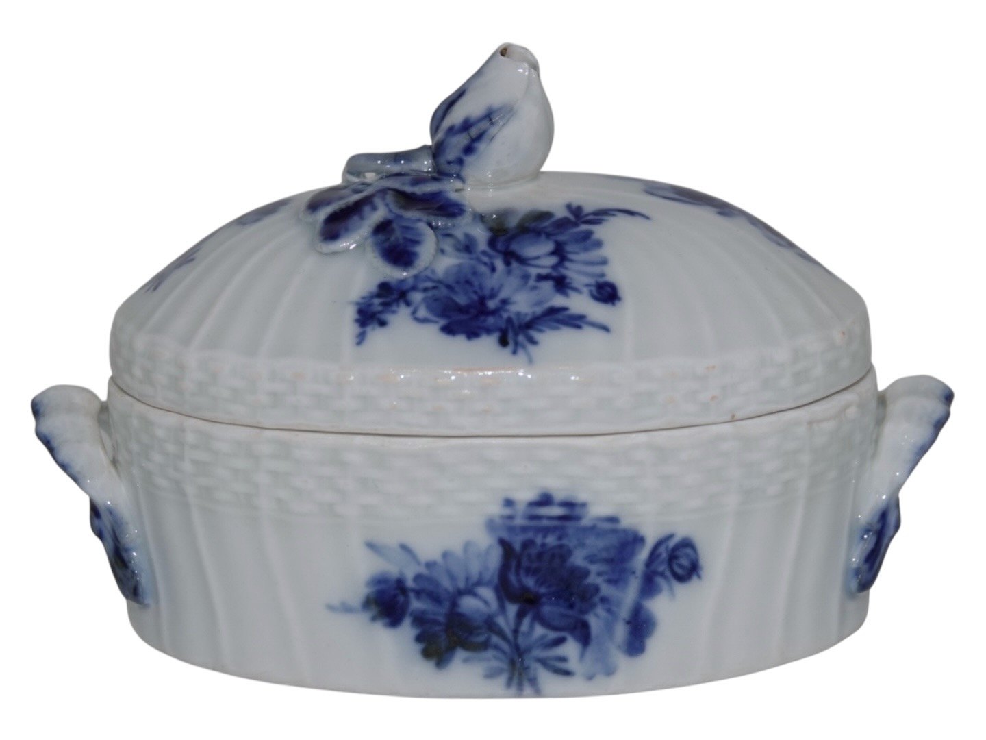 Royal Copenhagen Blå Blomst Svejfet, tidlig oval smørskål.