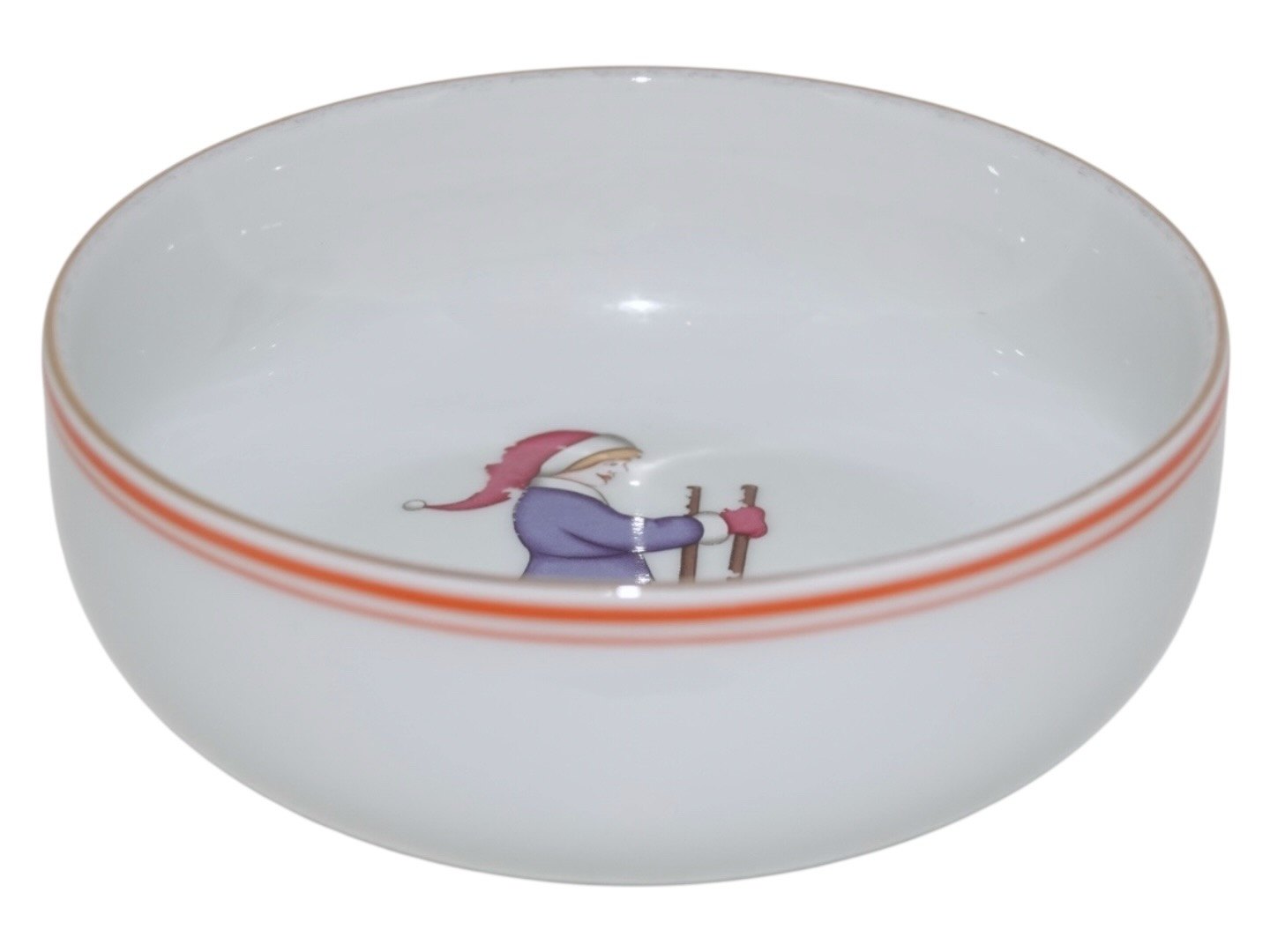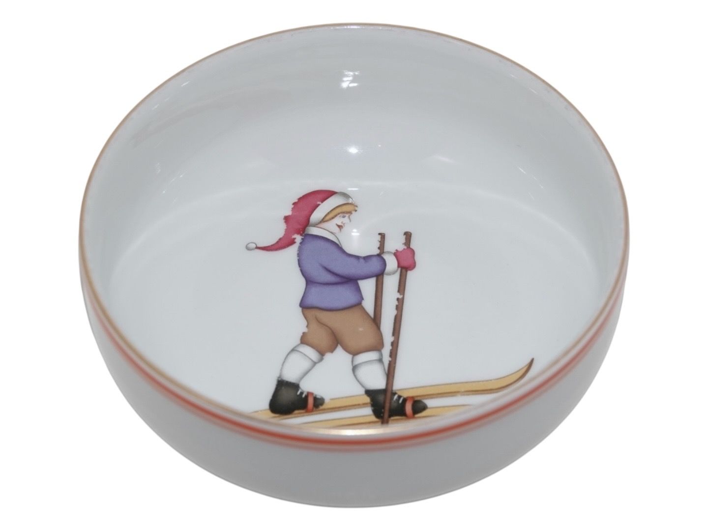 Bing & Grøndahl, grødskål / ymerskål dekoreret med dreng med nissehue på ski