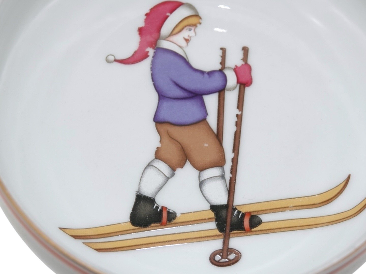 Grødskål dekoreret med dreng med nissehue på ski