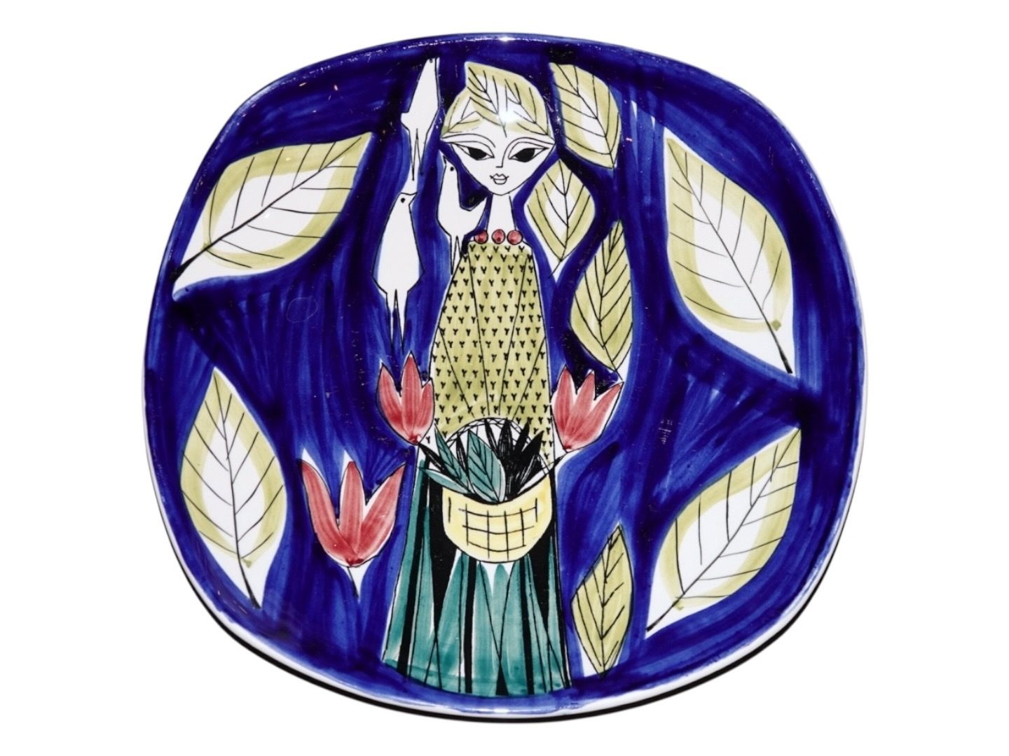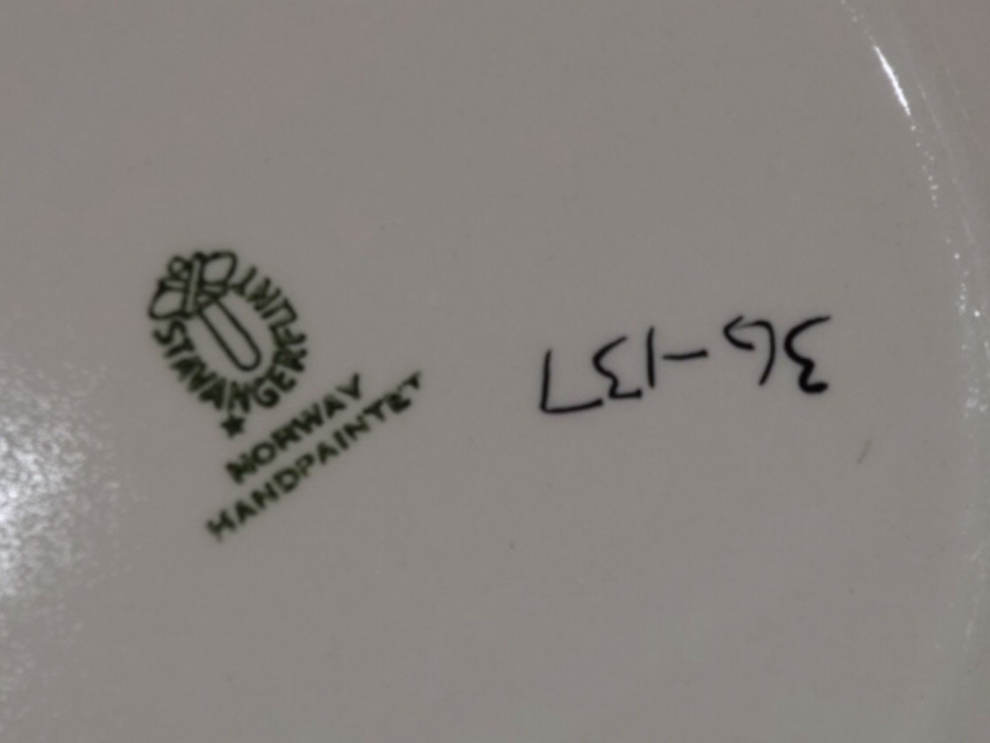 Stavangerflint Norge. Platte af Inger Waage fra ca. 1950-1968. Dekorationsnummer 36-137. Måler 28,0 x 28,0 cm. Perfekt stand.