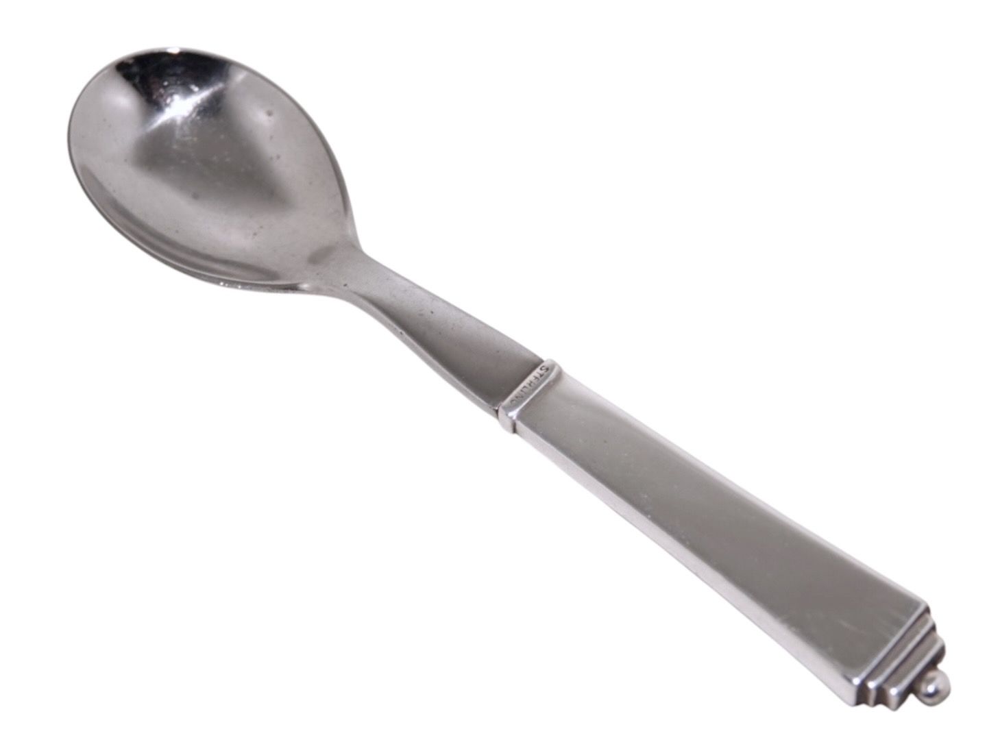 Georg Jensen Pyramid sterling silver and stainless steel, egg spoon. These were produced between 1933 and 1944. Length 11.7 cm. Very well kept condition.