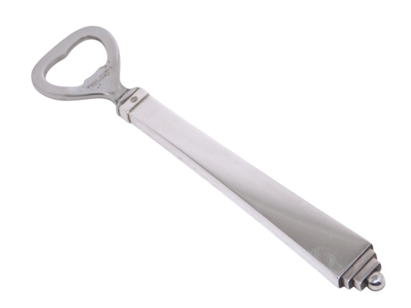 Georg Jensen Pyramid sterling silver and stainless steel, long bottle opener. This was produced after 1945. Length 16.2 cm. Very well kept condition.