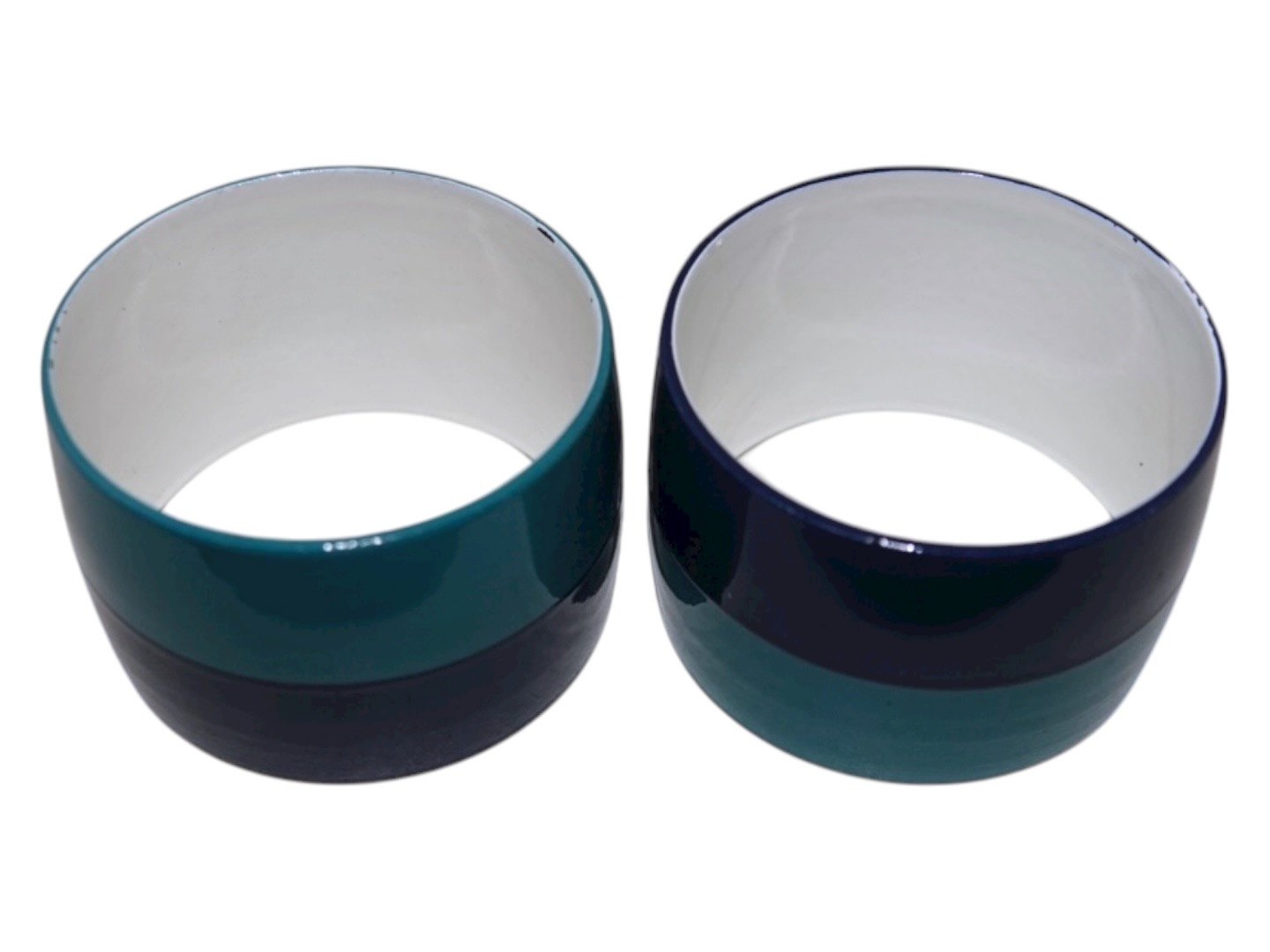 Laurids Lønborg, sæt på seks servietringe i turkis og blå fra 1970'erne. (Der er kun fem på billedet, men der er seks stk.).