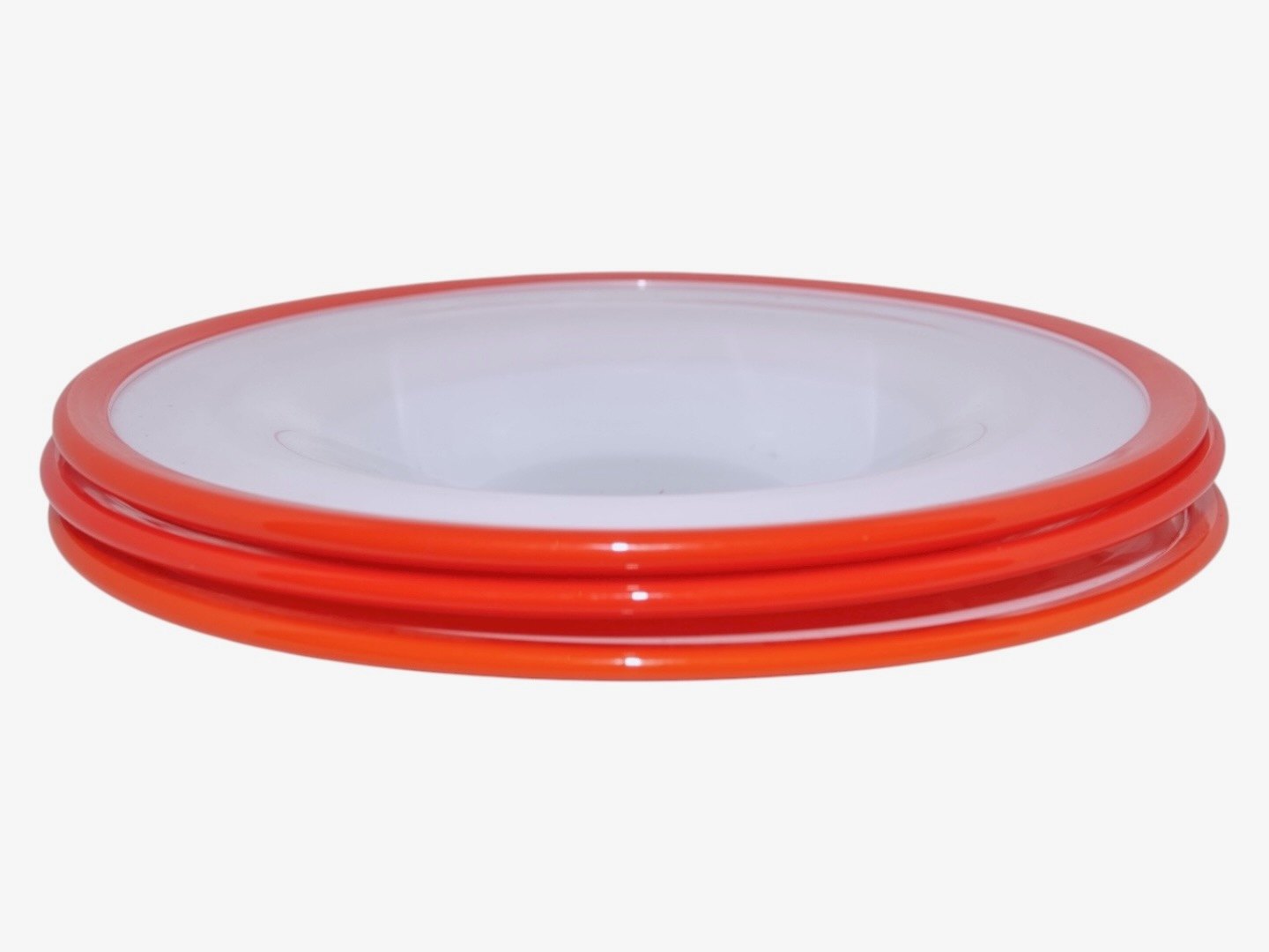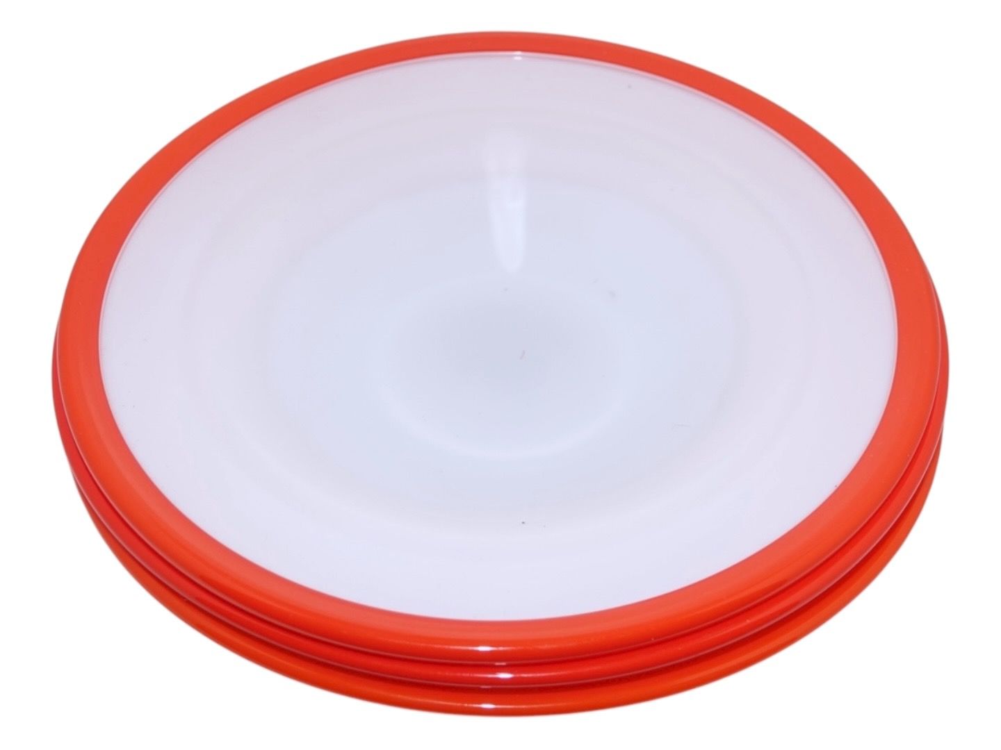 Holmegaard Palet, orangerød fad / tallerken. Designet af Michael Bang og disse var i produktion fra 1969 til 1976. Diameter ca. 23 cm. De er lidt varierende i størrelsen. Perfekt stand uden fejl.