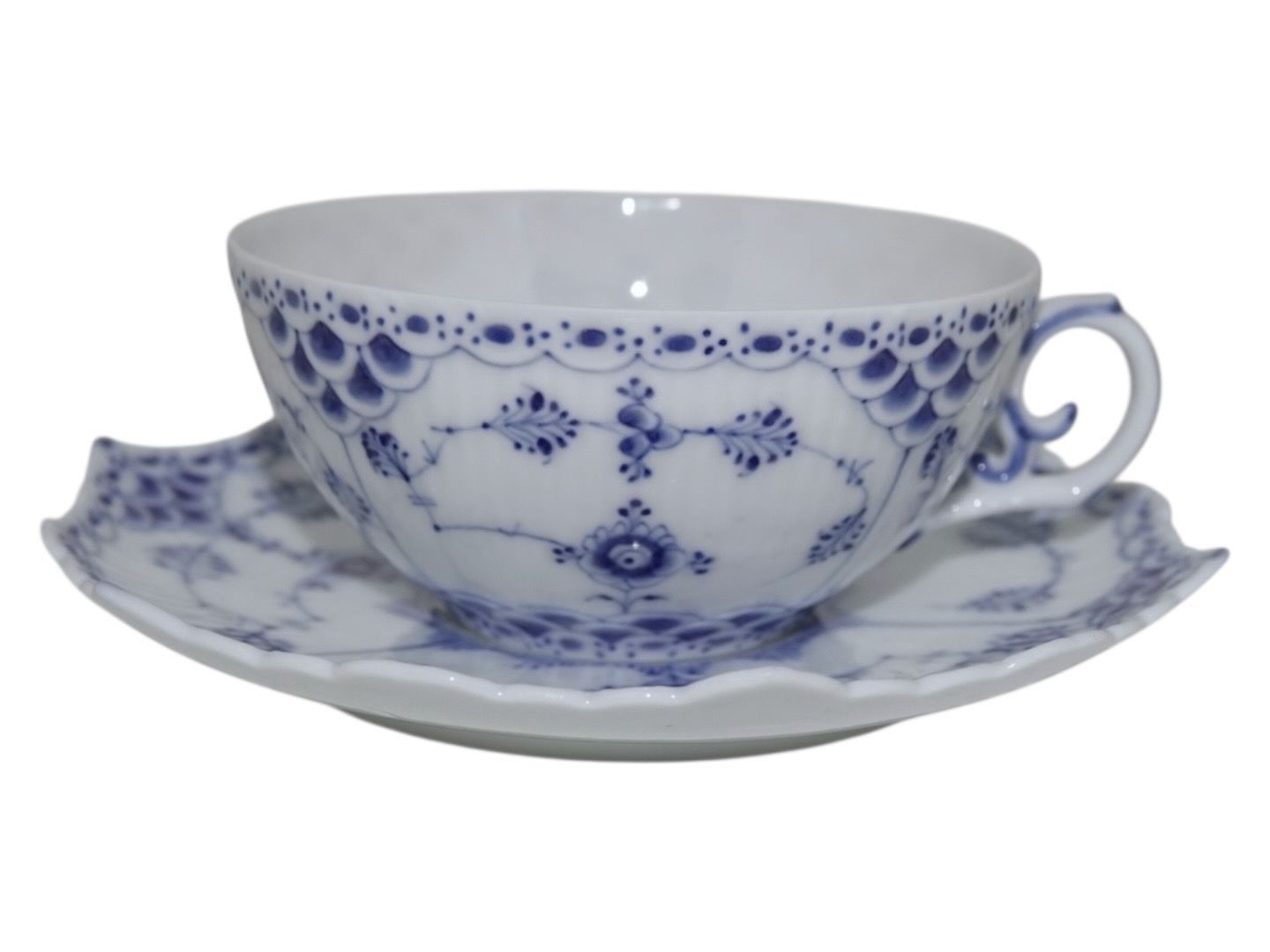 Royal Copenhagen Musselmalet Helblonde, tekop med tilhørende underkop.